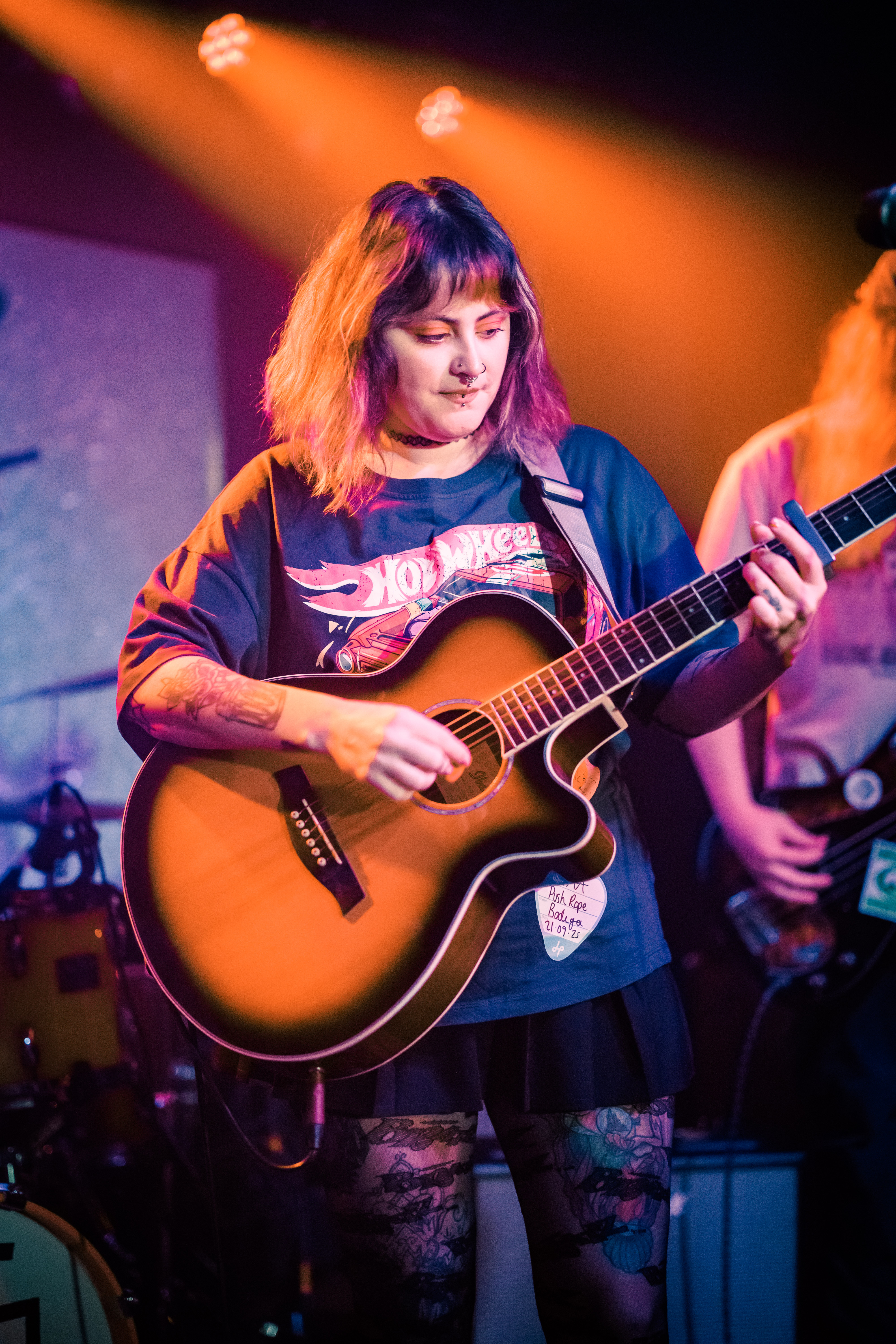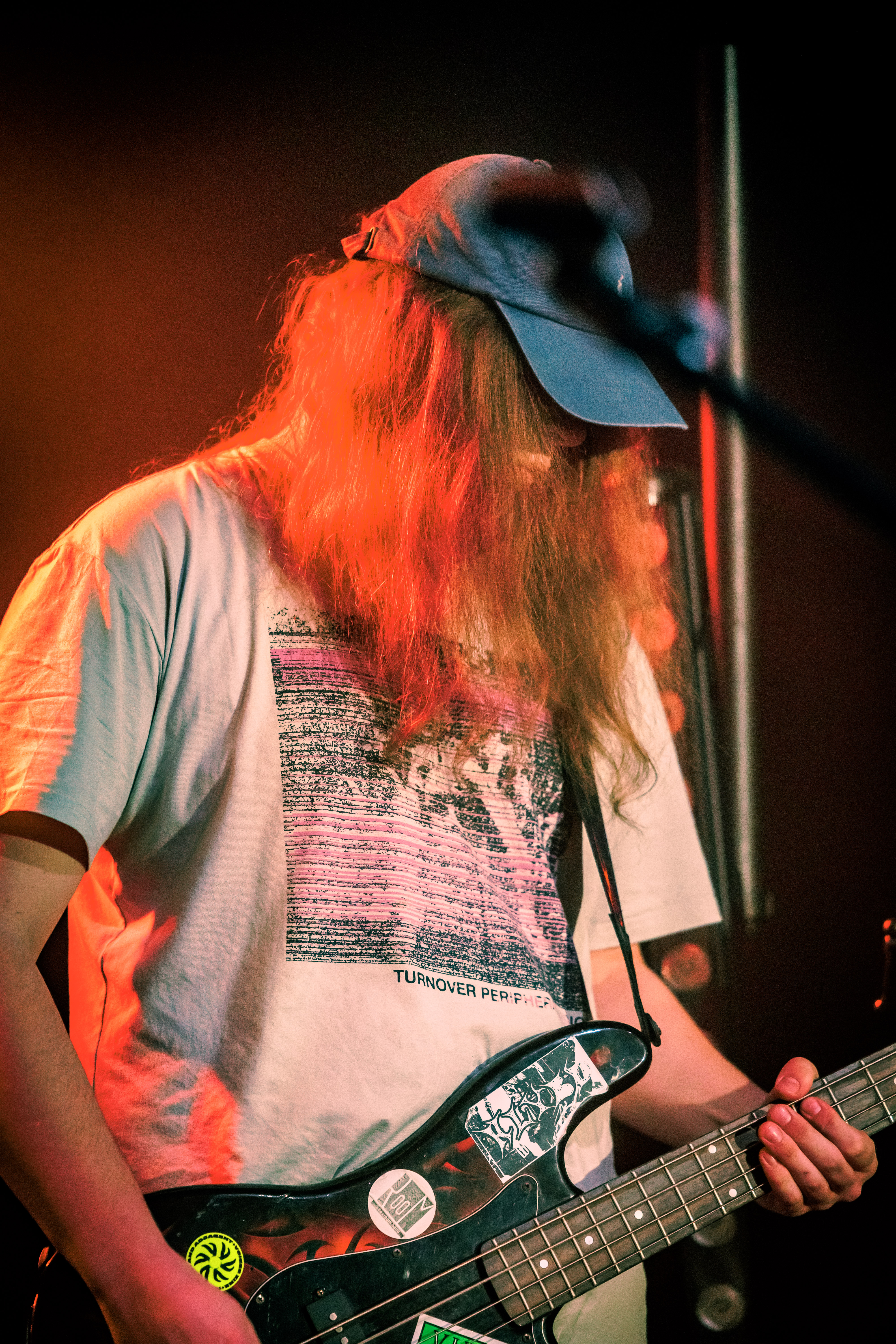 Airport Dad follow, bringing wit - “Get out of my head, because it’s a f-in mess” - and smartly concocted rock songs that nod towards shoegaze. Their set ends with a wholesome capo mix-up and their guitarist writhing on the floor playing with his teeth, which helps fuel the energy levels for the main act.