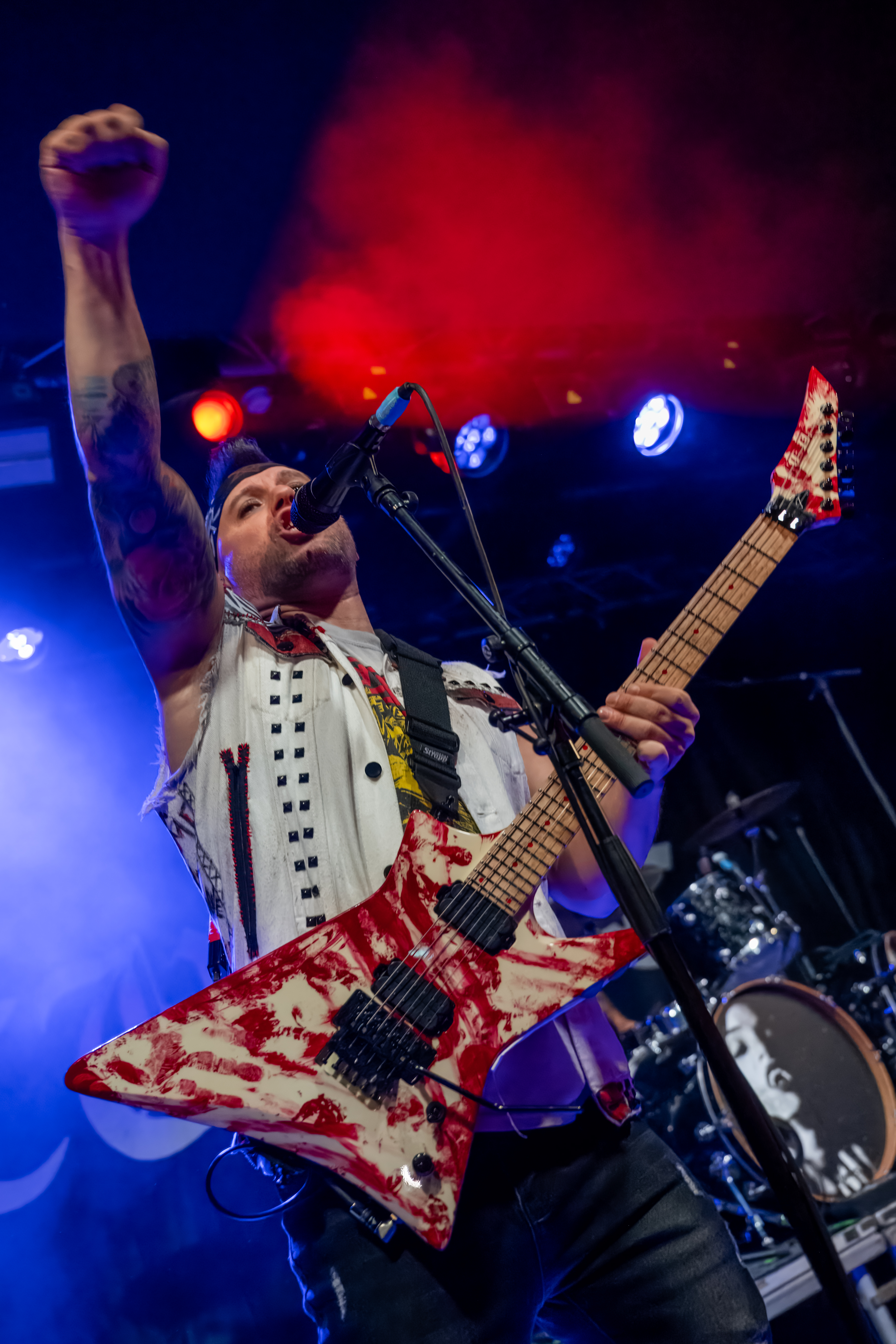 Now, I would like to take a moment to highlight the incredible live playing of guitarist Dan Jacobs. His guitar playing skills and the two guitars he played on stage were simply phenomenal. His playing style is very influenced by classic metal, with his lead parts reaching soaring heights and every note being perfectly placed. He’s an incredible talent and a brilliant and entertaining performer too, perfectly balanced for the role.