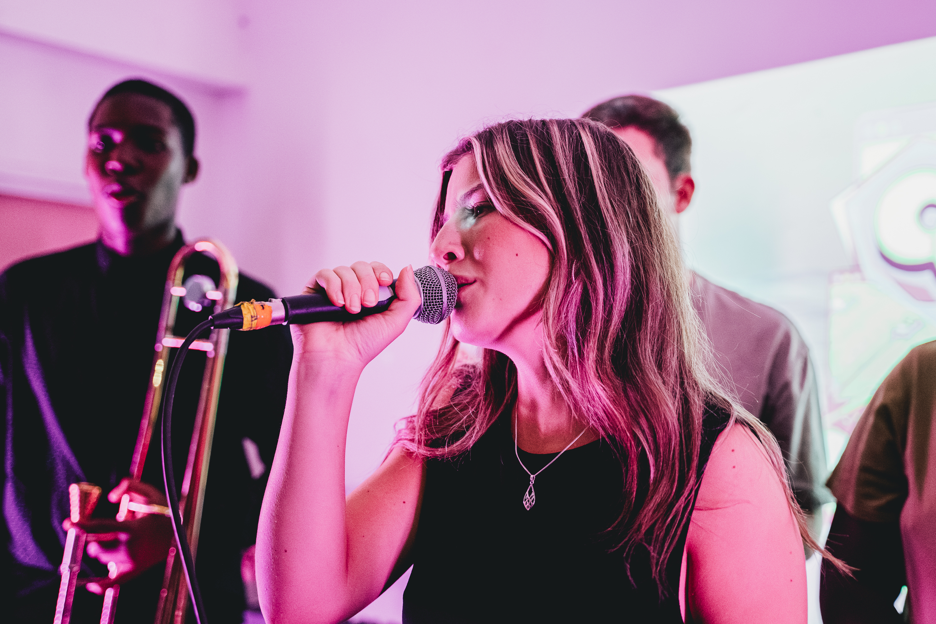 The night began with a song called Here We Go Again, performed by Molly May, Simran, Brian Bryant, TR!$TXN, Taysian, Tatum and ASHLY SONG. It's a jaunty, acoustic tune about meeting new people, and the group coming together to write and perform at Circle of Light, and was the perfect start to the COL 6 album launch. Brian Bryant remained on stage for the incredibly catchy Night and Day, which saw the first appearances from Romy, Aaleyah Brown, Rajae Wright, and Joshua Todd, whose debut single I Never Did was also out today.