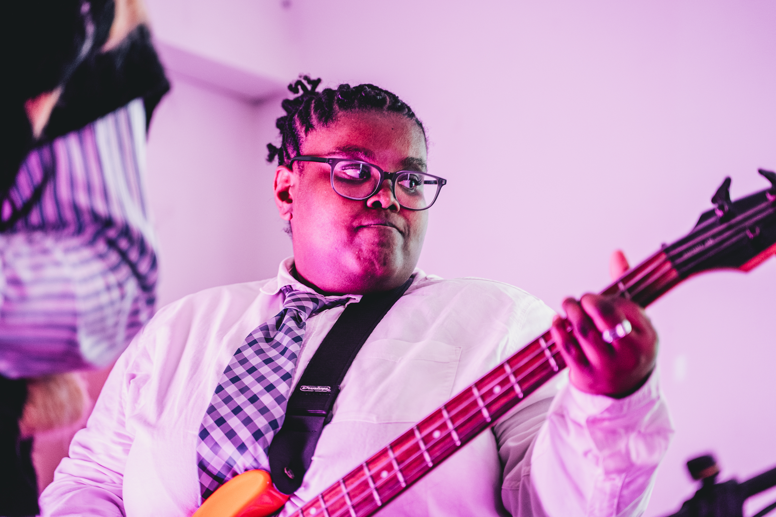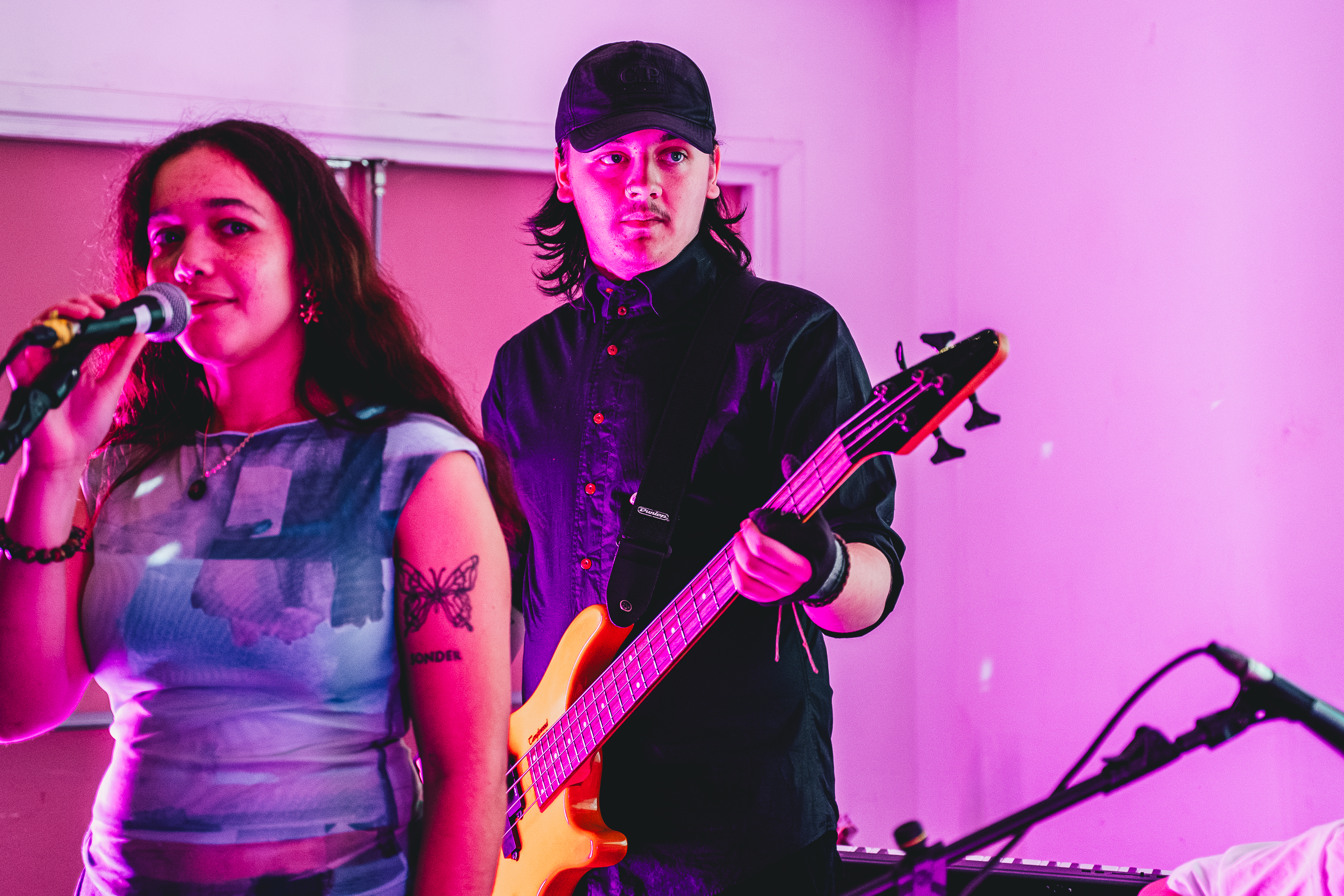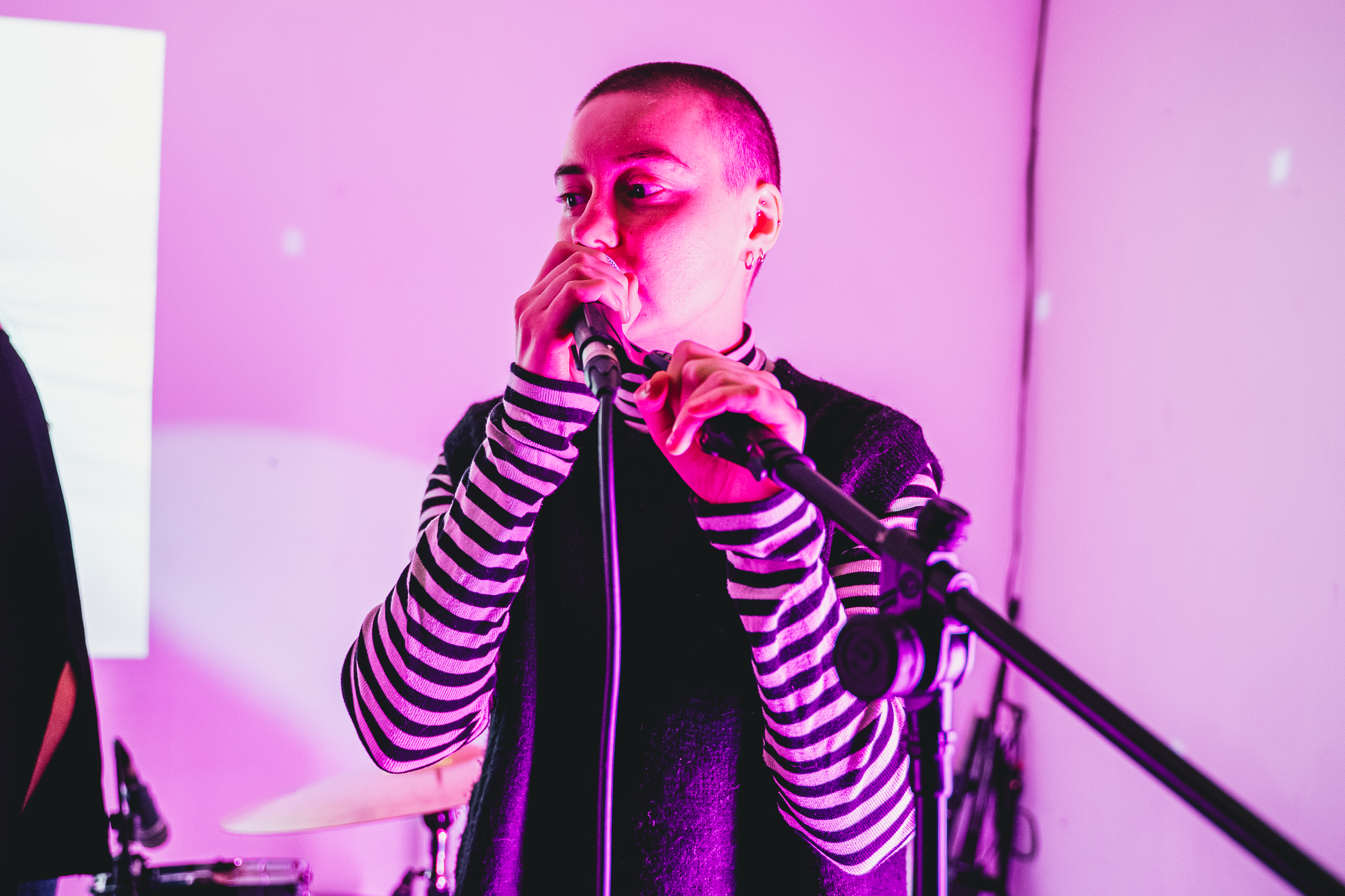 Next up, it was time for a bit of "riot grrrl" inspired indie with Romy and Hailey backed up by Aaleyah Brown on drums with the raucous Just a Liar. Fossil House followed, which saw Nikki ditch her hosting duties for a moment to perform on stage.