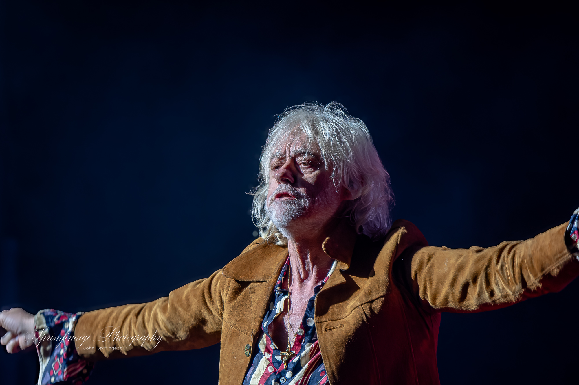 Bob showed no sign whatsoever of tiring, and come to that neither did the crowd, as more hit singles were skilfully replayed, with She’s So Modern ensuring a resurgence of dancing from many there. Ahead of playing Banana Republic, Bob made reference of how the band had been banned from playing in Ireland after his denunciation on live TV of “nationalism, medieval minded clerics and corrupt politicians in Ireland”, and how he wrote the song as a response to the ban.