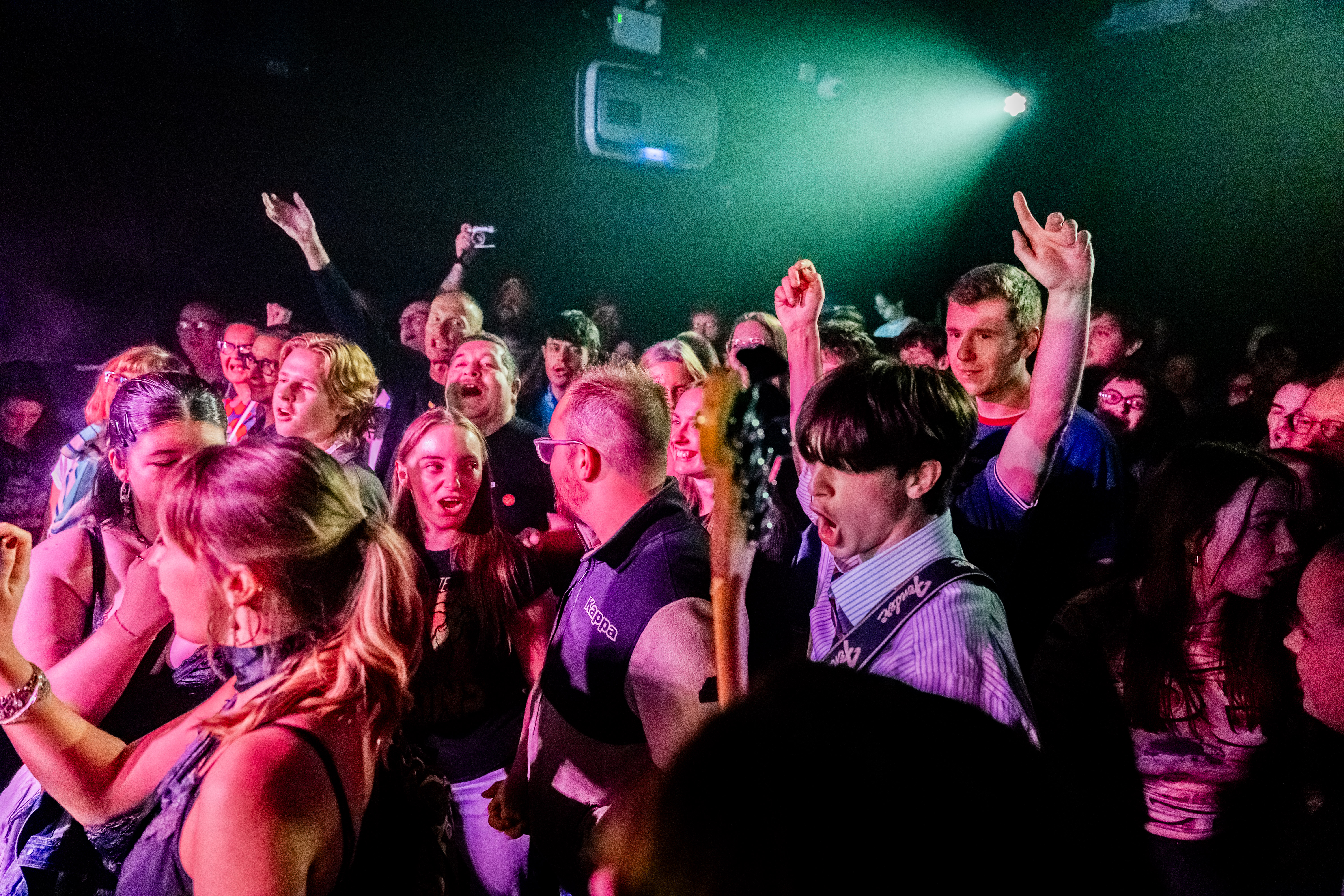 Inspired by suburban boredom, disco rhythms and Britpop observation, Welly fill the floor with their opener Big in the Suburbs, the title track from their debut album released in March 2025, which sees the crowd pogo-ing throughout the chorus. Despite its upbeat energy, the song invites an almost philosophical experience, depicting an image of a life many of us can relate to, a destiny we are doomed to repeat despite our desire to change, an ouroboros (the ancient symbol depicting a snake eating its own tail) of existence.