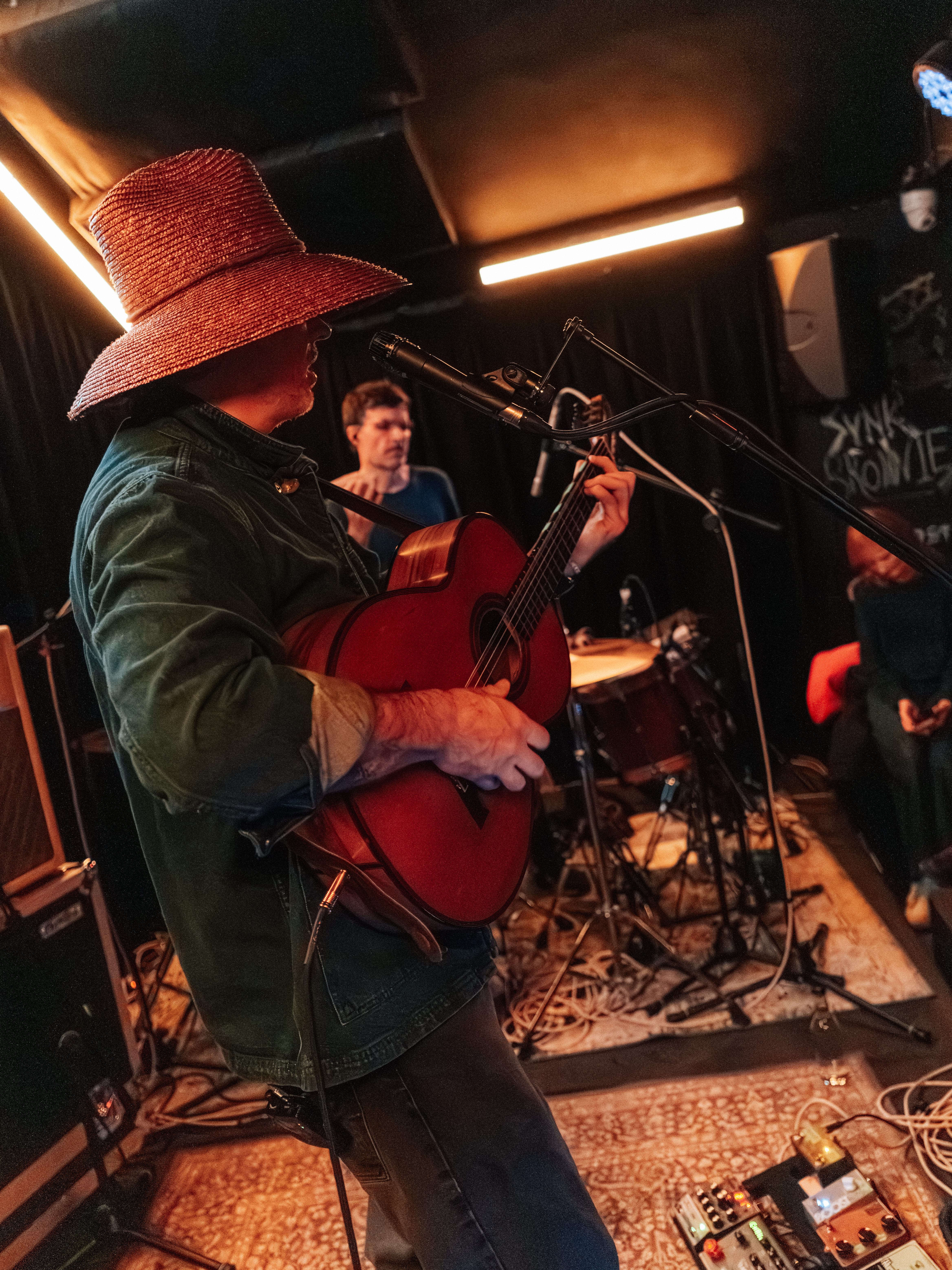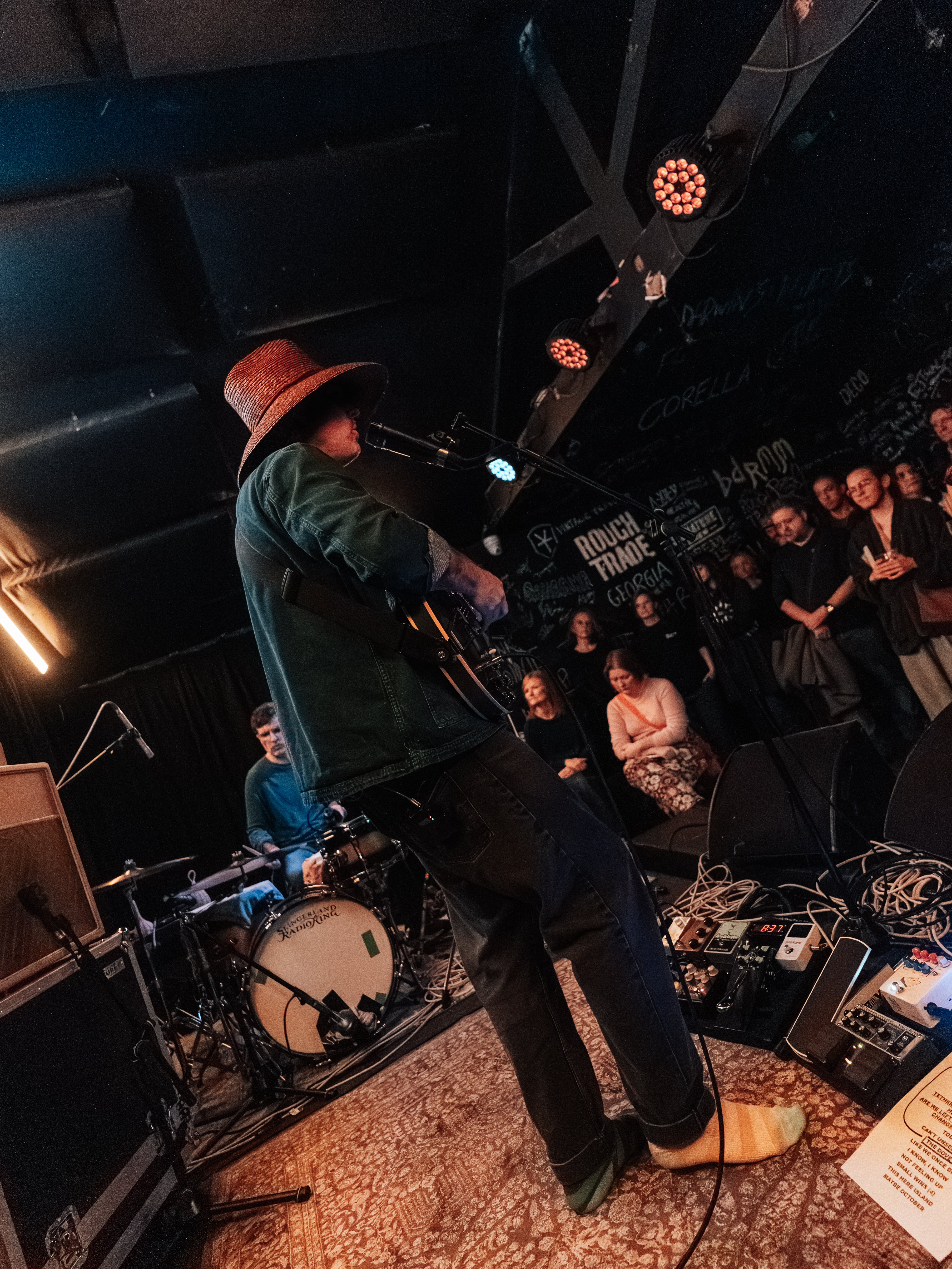 Dekker arrived at Rough Trade in Nottingham on a cold and wet Sunday evening but inside the mood was warm and inviting. Dekker took the stage in his trademark hat that has began to take on a life of its own amongst those who follow the artist. Dekker himself has said he isn’t especially attached to his famous hat, but people that I spoke to were still taken by the appendage that first made its appearance in 2019.
