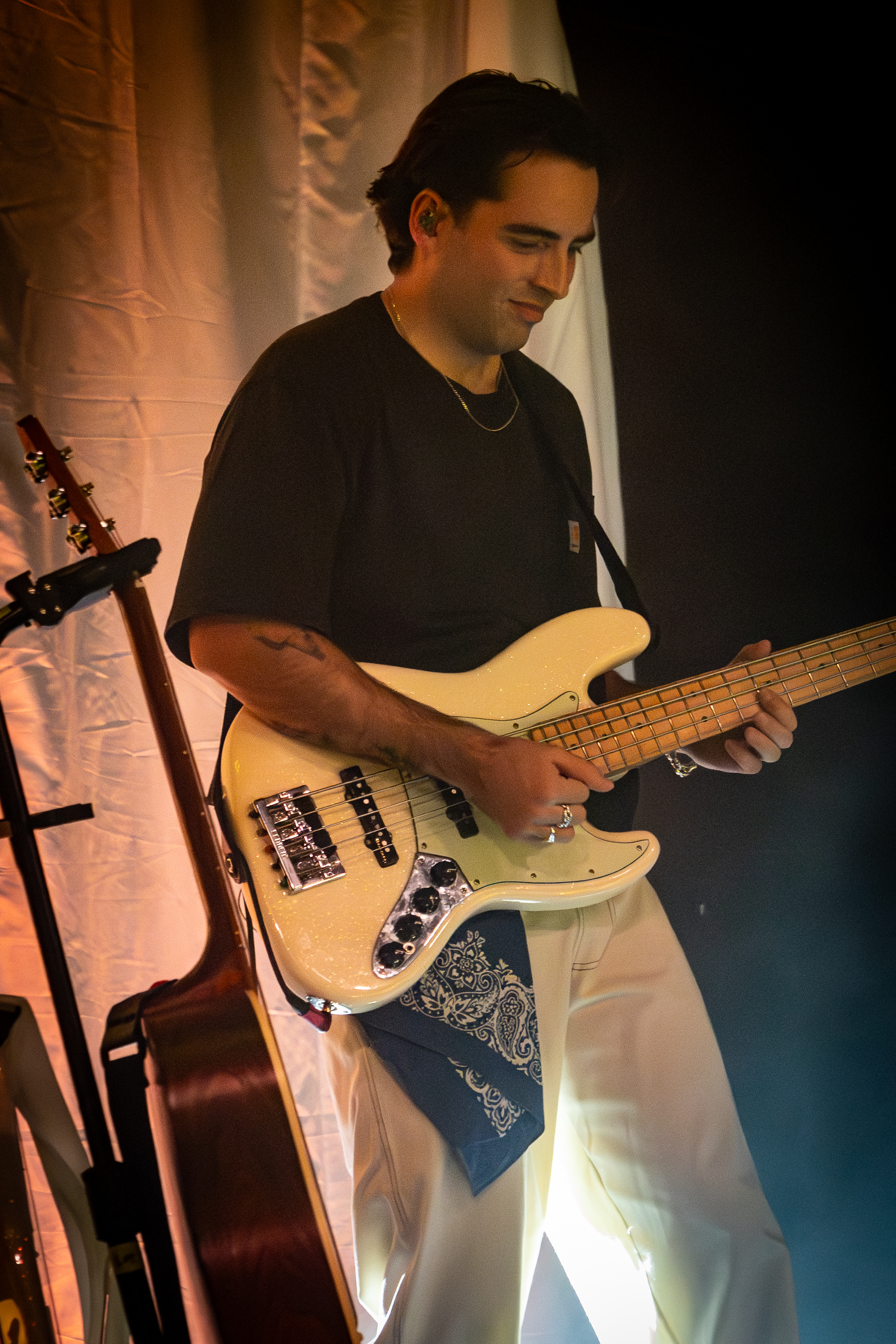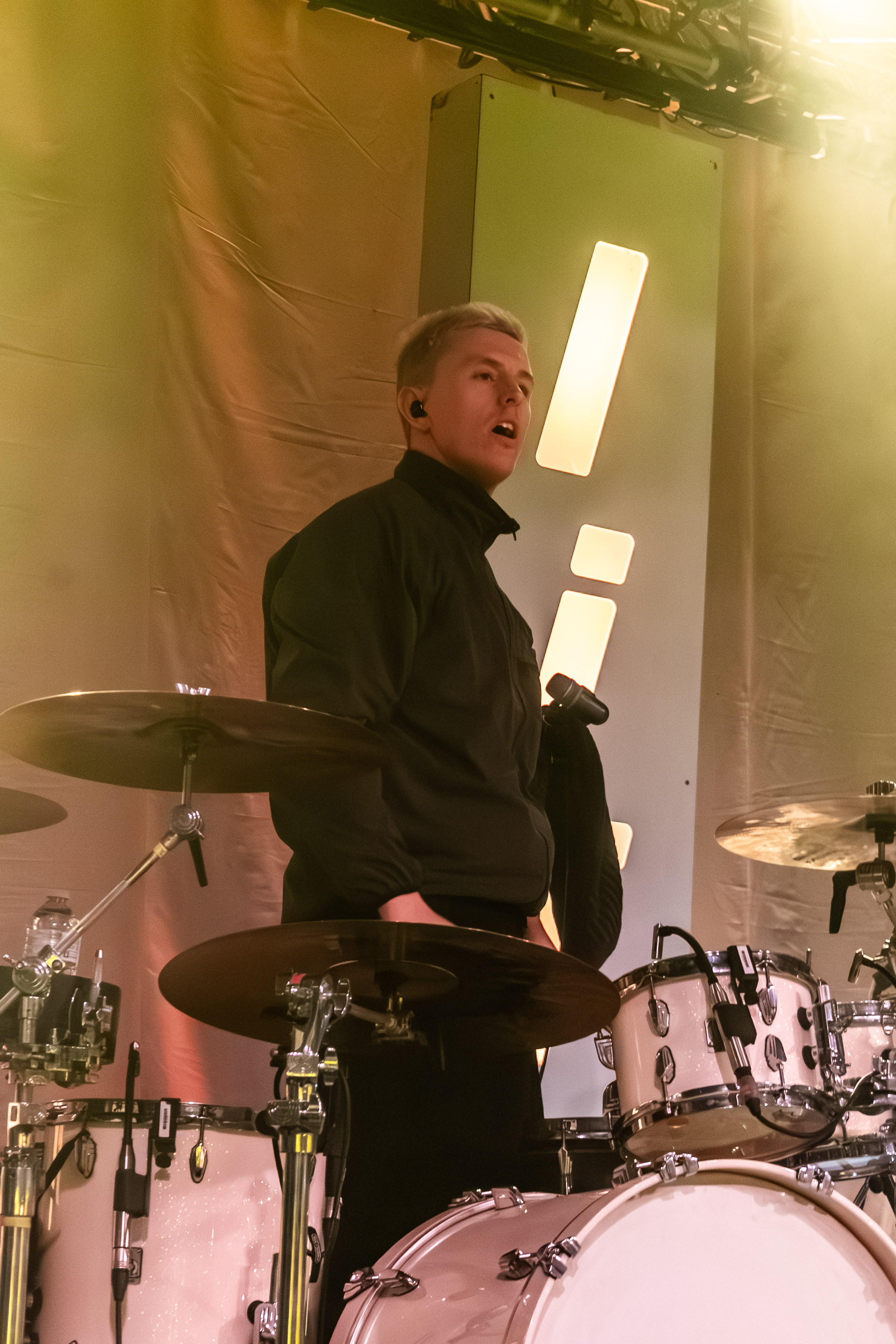 Drummer Oliver Cassidy was the first to swagger on stage; (celebratory bottle raised in hand) then guitarist Lewis Berry, keyboard player Jordan Birtles, as frontman Murray Matravers followed suit, before he officially opened the distinct bars of Tears, the first upbeat track off HL’s namesake tour and recent album Onion. The song is cleverly sampled from Natalie Bergman’s Keep Those Teardrops from Falling and has understandable tongue-in-cheek references to the band being sued by easyGroup over their former name Easy Life. The satirical lyricism is mixed with reflective musings, a touch of remorse, cynicism, the agitation of stark change and the harsh reality of growing up: "My accent’s changed from my native tongue/I drink plant-based milk/It’s a gateway drug/ But there’s no use crying over oat milk/ Seen artists come and go/I’ve got survivor’s guilt”.