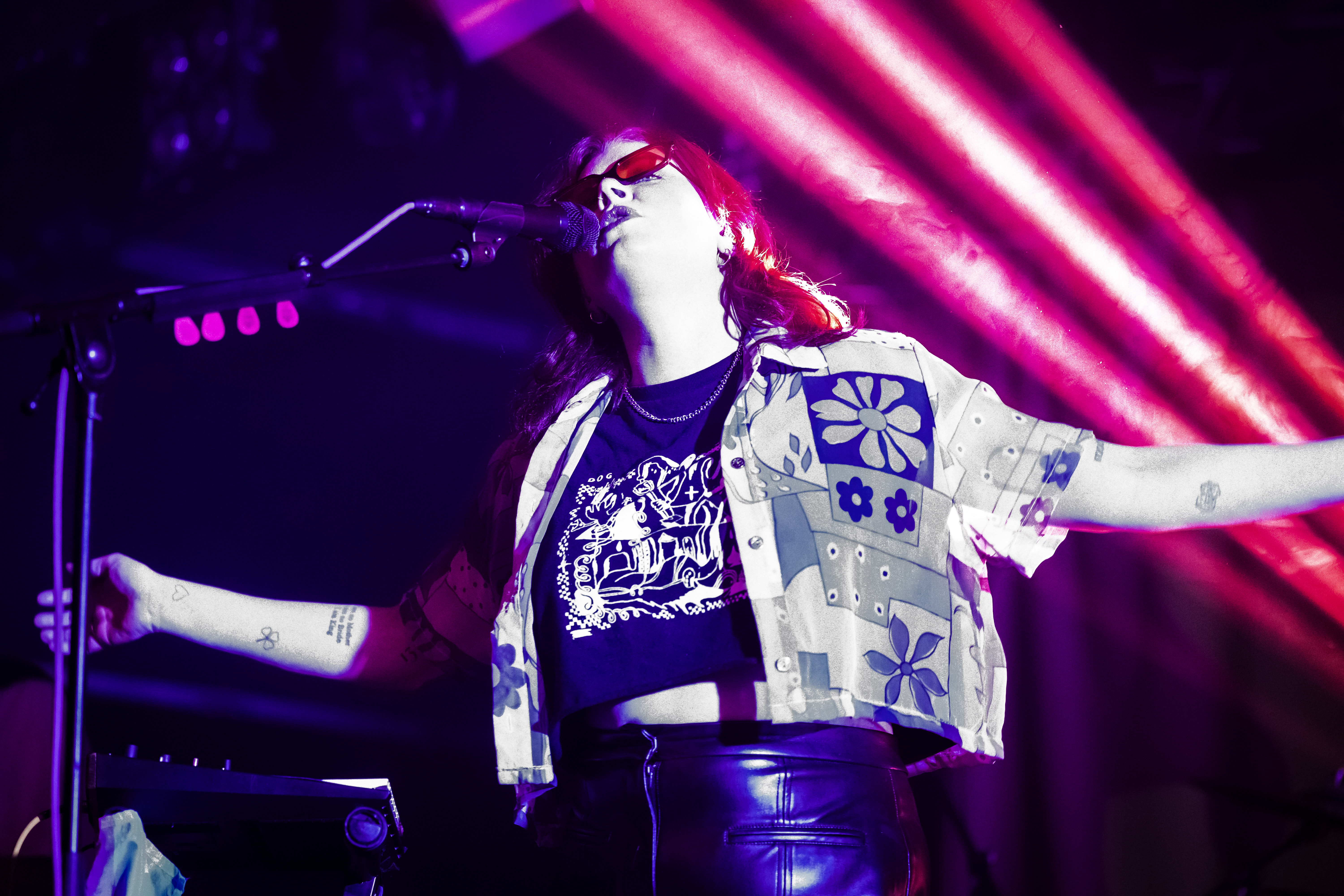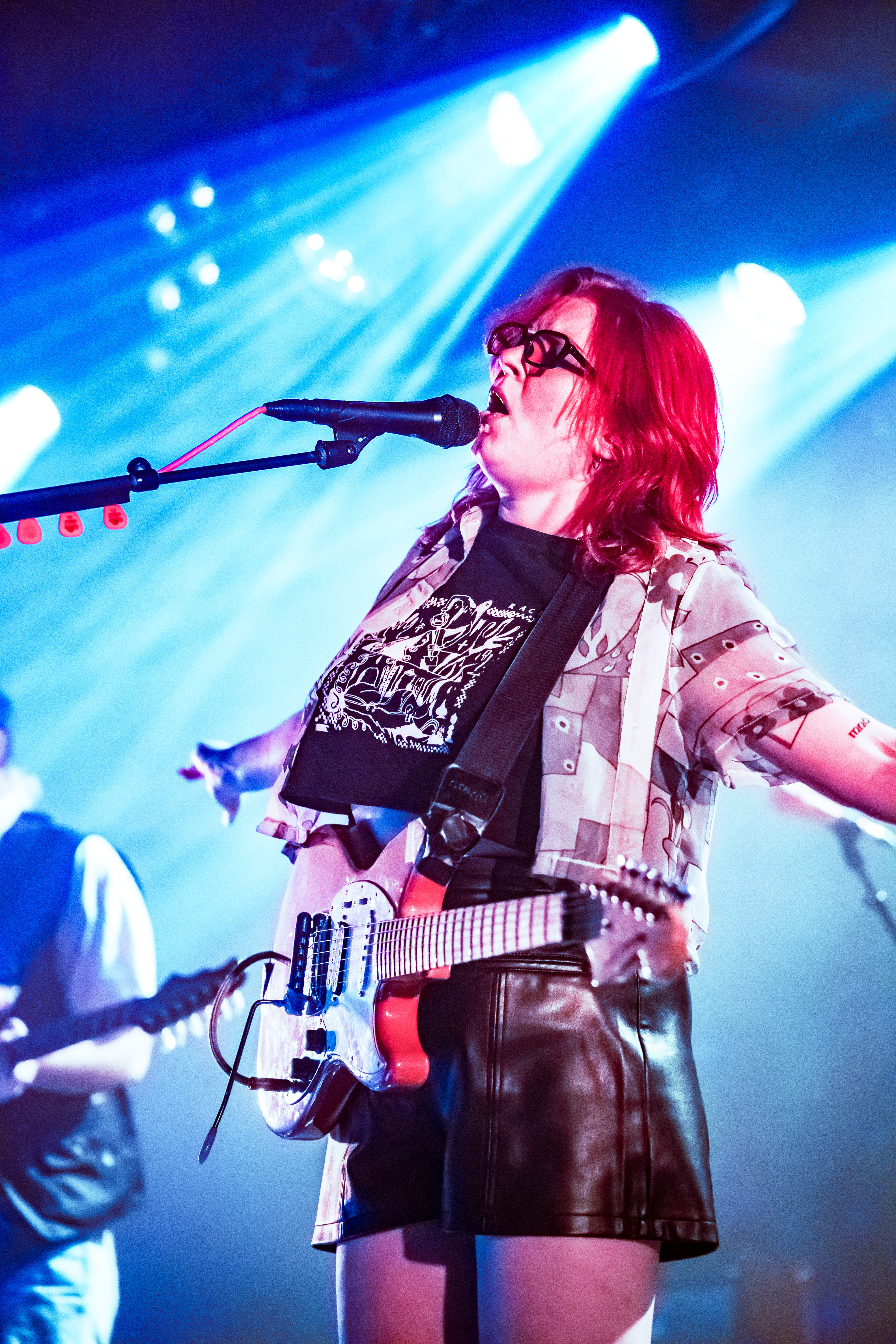 Throughout the evening, Chubb gees the crowd up, gleefully cajoling them to mosh, to jump, to shout, leading by example every step of the way as she pinwheels and bounces across the stage. She is also fiercely proud of her queerness and happily dedicates the gig to the queer community, sweetly pledging to use the band’s privilege to act as a voice. There’s even a heartfelt call-out to the ‘6Music dads’, too.