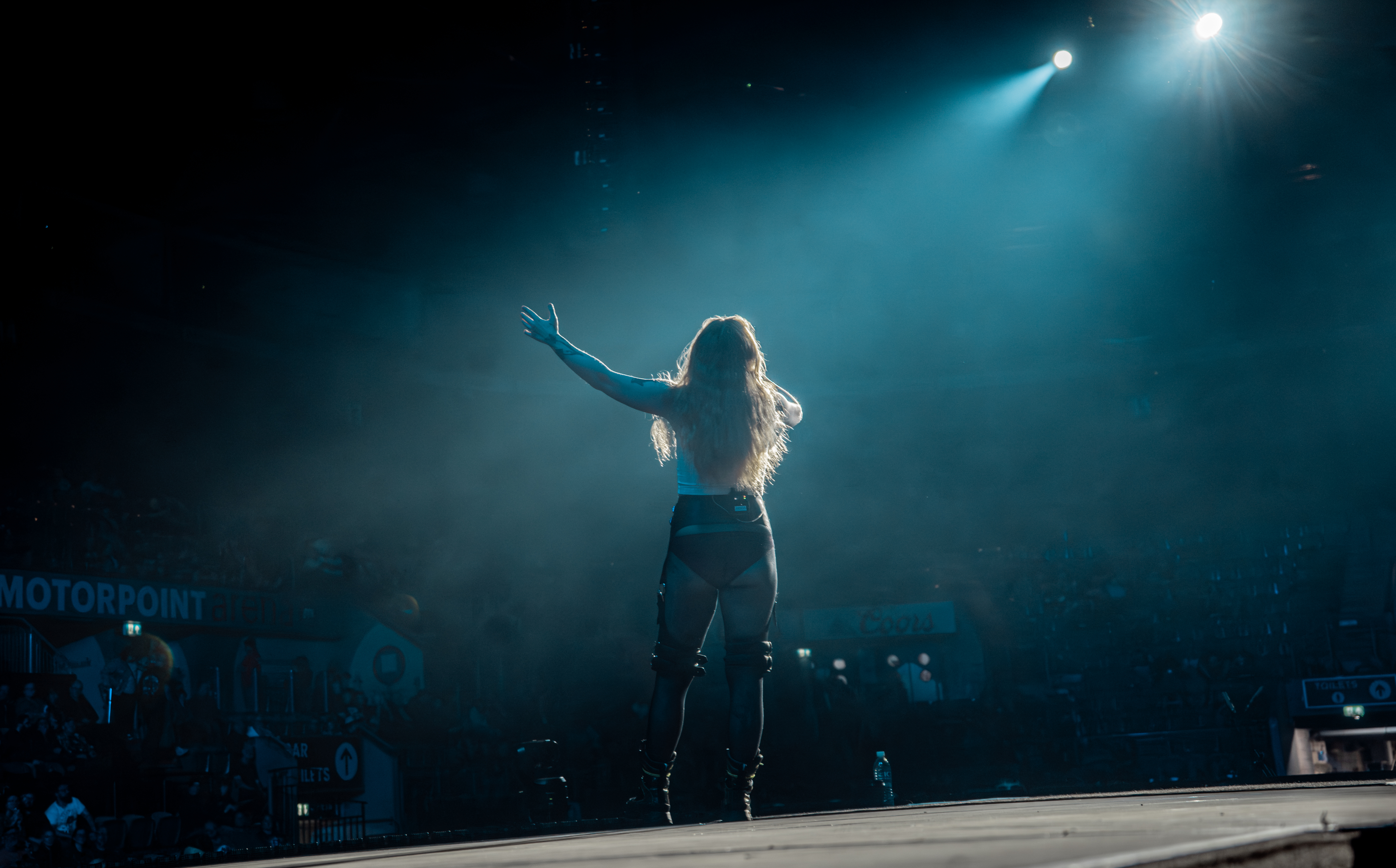 There’s an intense sense of motion and anxiety to their songs, in the most positive way, and they very much play around on this idea on the stage. The stage consists of two large, slightly raised diamond platforms and in-between one long runway with a diamond head to it. All this means there is a lot of space to play around with, and Witch Fever really make the best use of it. Guitarist Alisha and bassist Alex constantly walk up the runway during build-ups, edging towards vocalist Amy, who performs with such an intense passion it's a joy to watch. A rather scary joy, though.