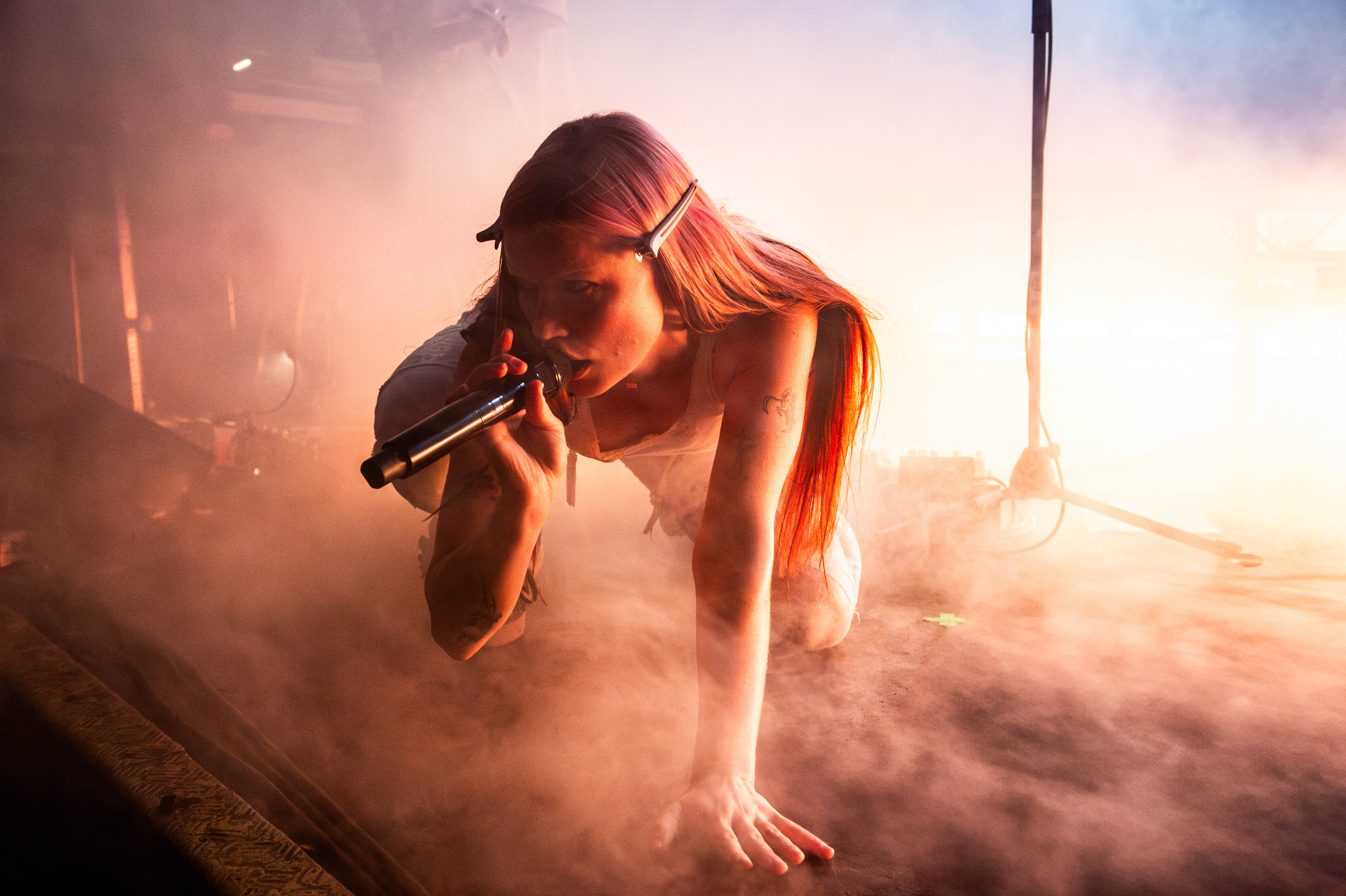 I arrived just in time to see the end of Faux Real, the Franco-American, "Jacques of all trades" disco, electro, glam-rock Euro-dance duo, brothers Virgile and Elliott Arndt, whose fun, energetic set ended with them in the crowd for an immersive experience. They're based in Los Angeles and are cited by Teasdale as influencing Wet Leg. The boys have also collaborated with the band on Waking Away From My Demons.