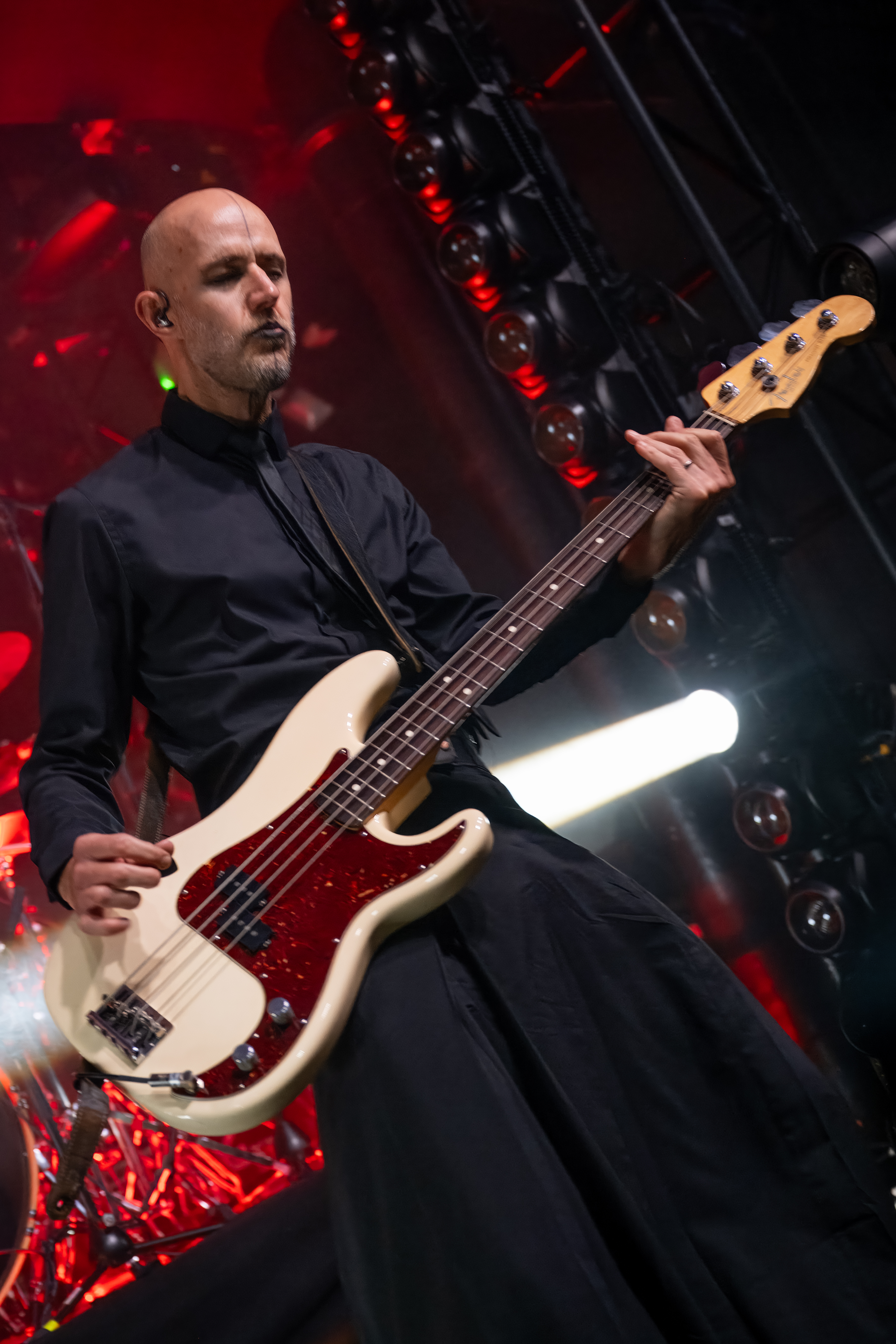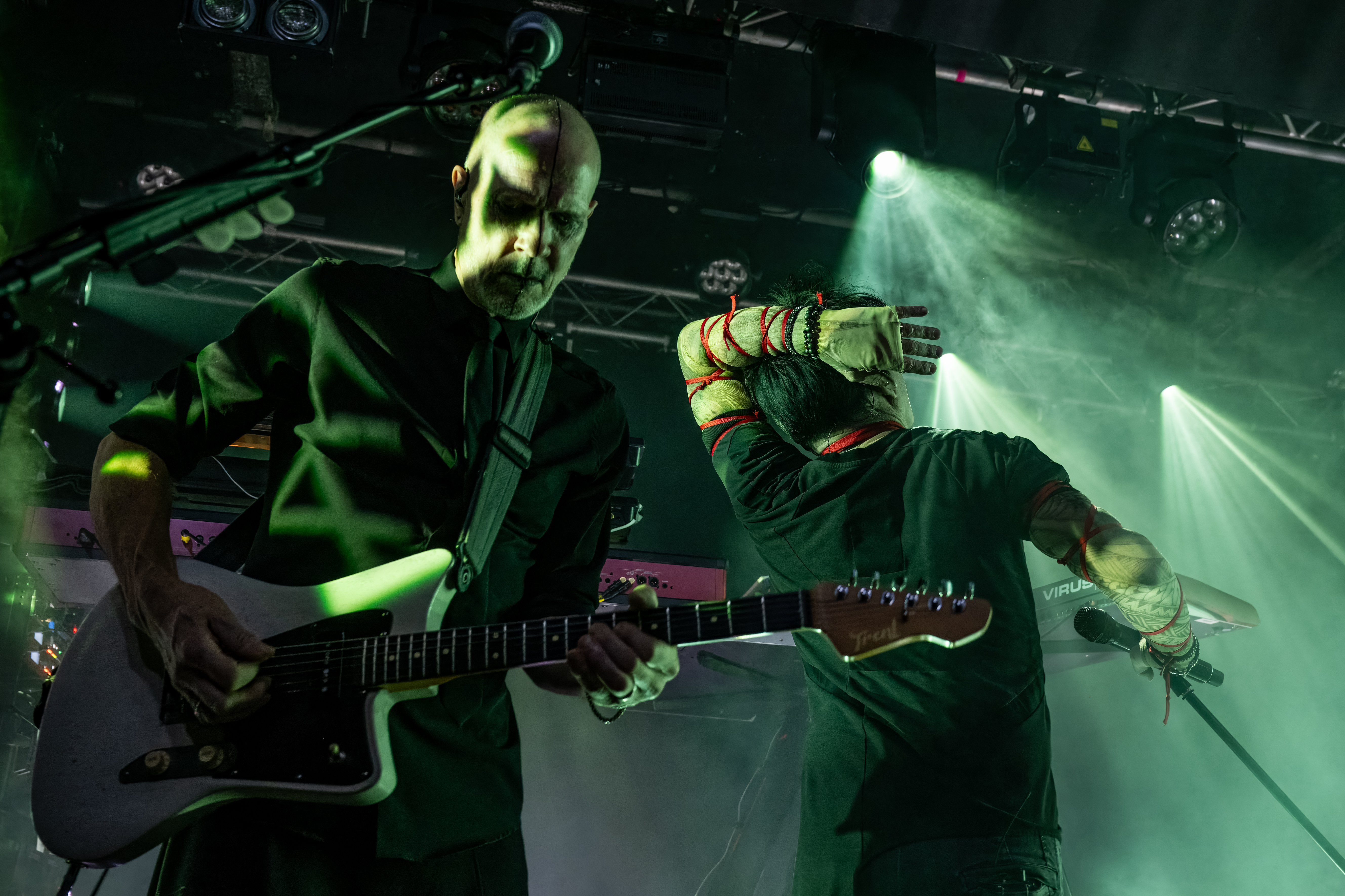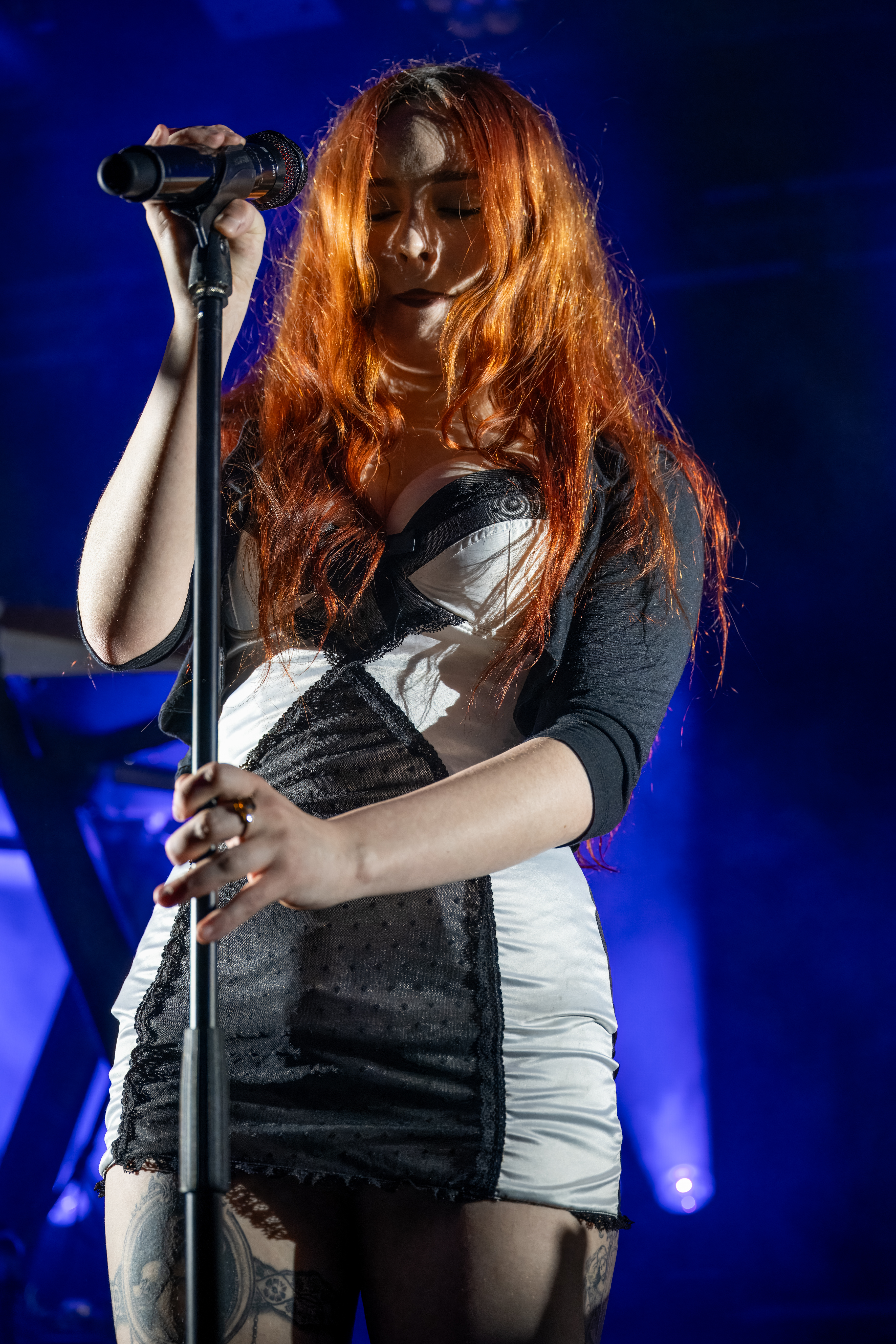 Her sound feels like an exact mix of her father’s brand of electronica and goth music, fused with a modern rock feel and layout. She’s joined by an excellent four-piece band, with guitar, bass, keys/synth and drums. One thing that’s very impressive from the get-go is her vocals. Despite being somewhat deep in the mix, they are resounding and powerful and whole, drawing off the slow, gothic-coded instrumentals and really going for it in all respects. For reference, her band are all in one line at the front of the stage, which in my opinion is really interesting and definitely adds something to the set, providing a clear view of everyone, especially the drummer, who uses a drum machine for some really interesting segments of songs. There was also a platform at the back, which originally I thought was just for Gary’s set (due to the fact that most of the time at Rock City the support take everything off stage for the headliner to play), but was wrong as Raven used it at many points, turning around and taking to the platform, using it to look down on the crowd in a performative haze, adding a dark, enigmatic and overall mysterious feel to the set.