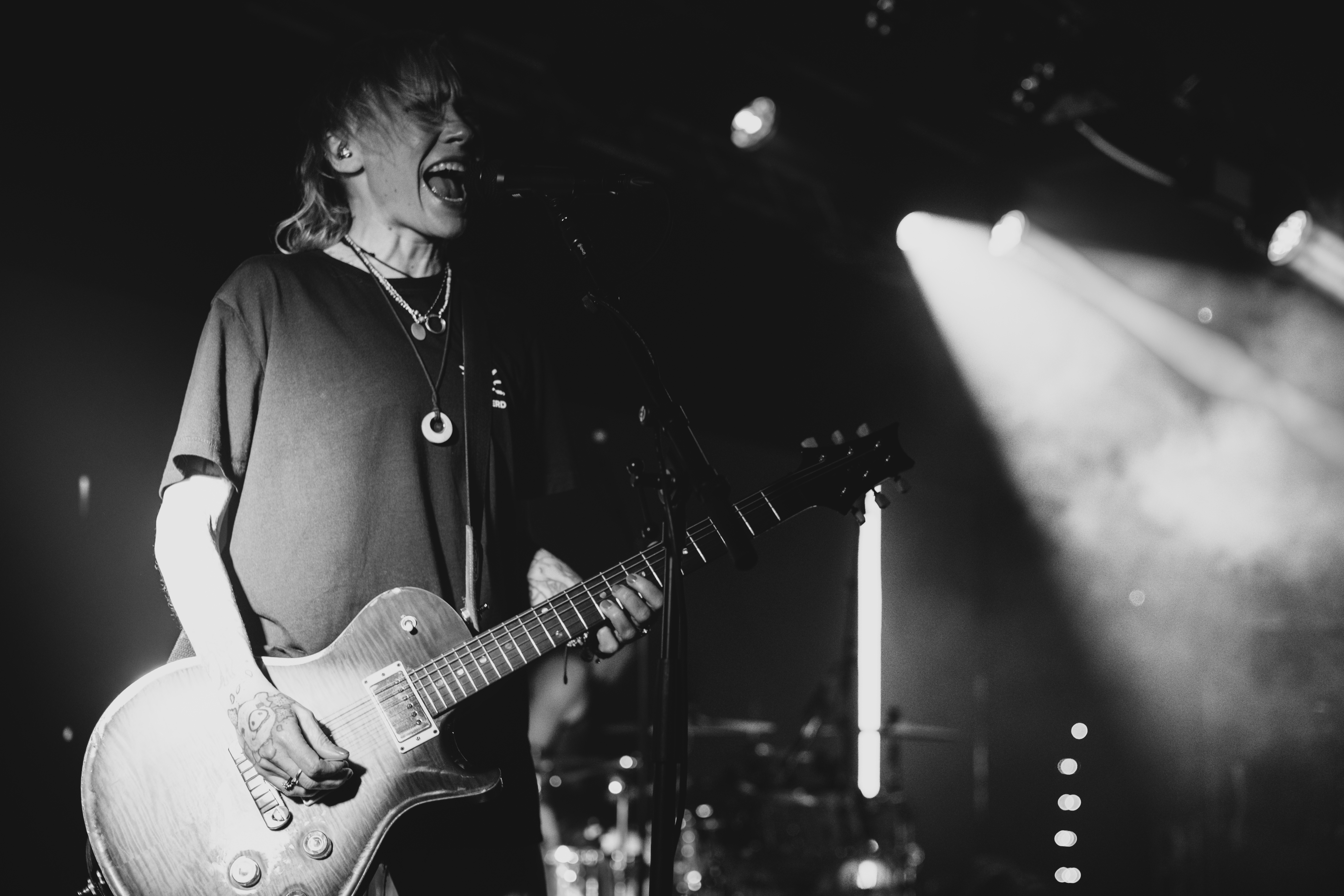 Opening with Rest in Pieces and following up with Guilty, the band immediately established a dark, atmospheric tone for the evening, layering Lauri Ylönen’s crystalline vocals over a wall of guitars that leaned closer to shoegaze than their early pop-punk leanings, such as F-F-F-Falling which soon made an appearance a little later on in the set. The transitions were seamless: No Fear, Time to Burn, Still Standing (though this was a shorter version, sadly) and Shot carried the weight of their early 2000s catalogue, while newer cuts including Banksy and Weirdo, where Ylönen was joined on stage by Lee Jennings from The Funeral Portrait, showcased a sharper, more experimental edge. Rock City’s intimate, sweat-soaked walls amplified the chaos.