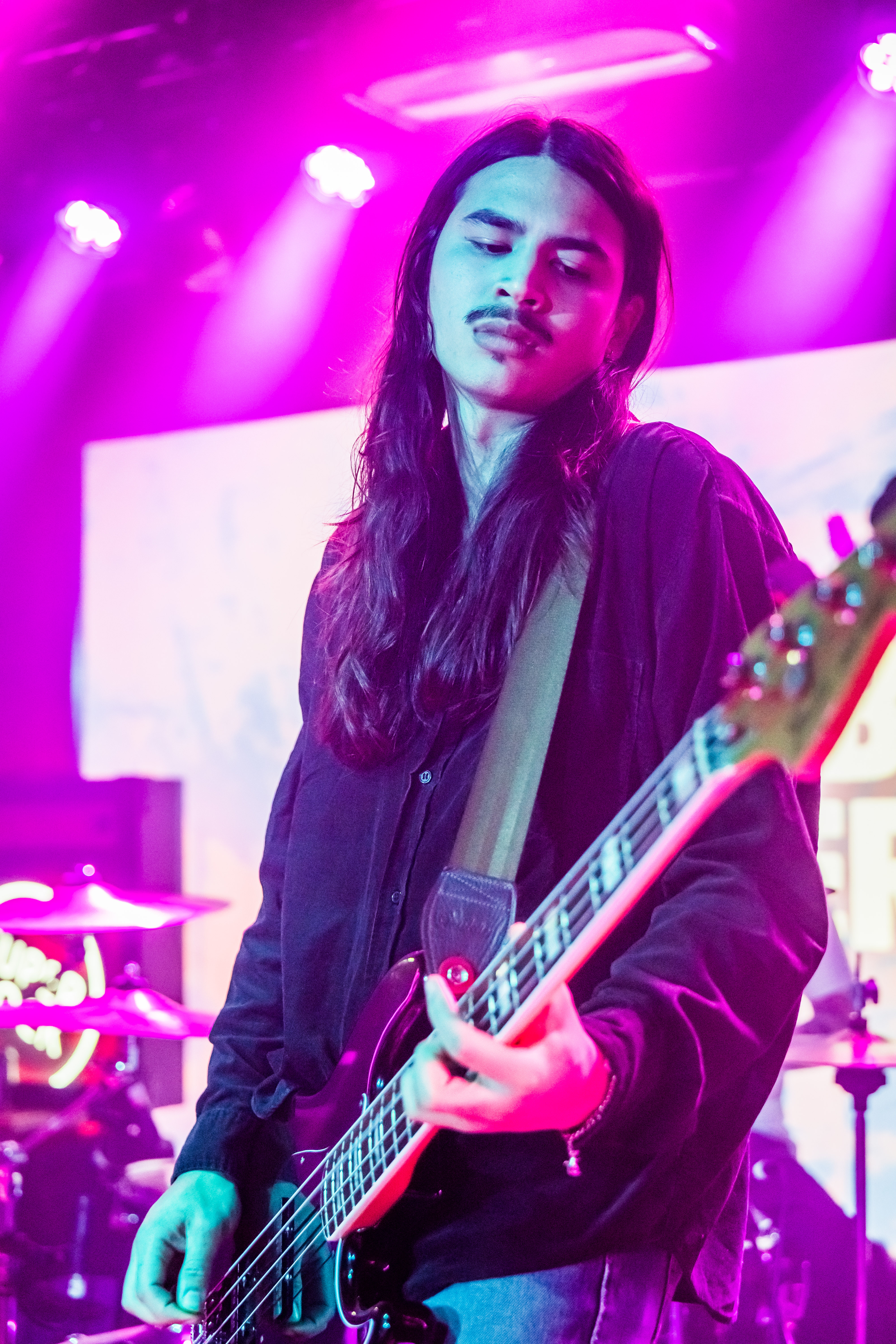 By the time Bloodworm take the stage, the room is primed. Penultimate on the bill but headliners in spirit for many, they play with the confidence of a band whose upward trajectory feels unstoppable. Recently signed to 13 Artists and announced as UK tour support for Suede next year, the trio sound bigger, darker and more assured than ever.