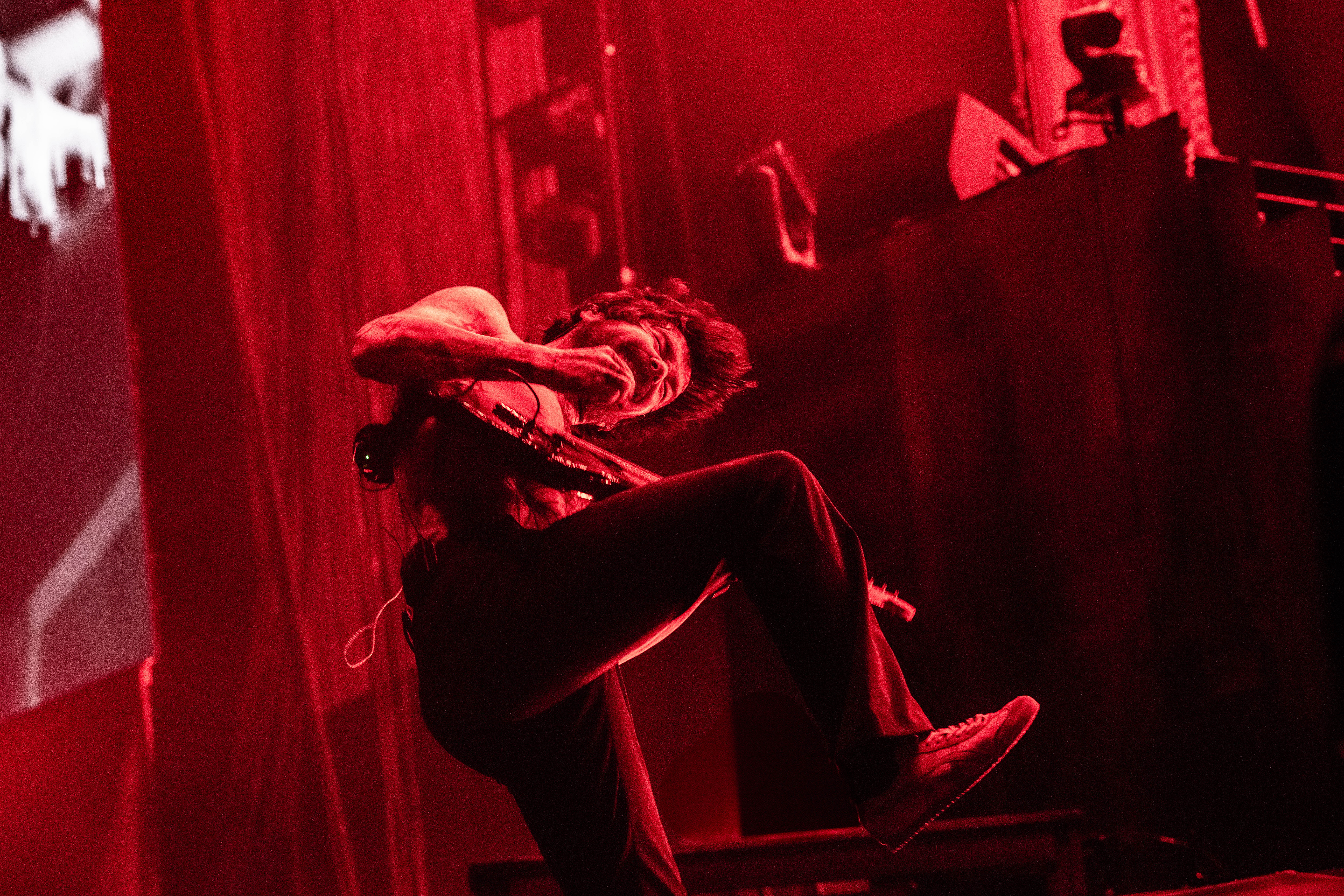 Next up is punk duo SOFT PLAY, who arrive to the sounds of popular hymn All Things Bright And Beautiful. It soon transitions into their own, much rowdier track All Things, with drummer and vocalist Isaac Holman then asking at the climax: “How the f**k you doing Nottingham?!” It may be a Monday night, but a good portion of the crowd are here to party, as Mirror Muscles and Isaac Is Typing… see the first few mosh pits start to open.