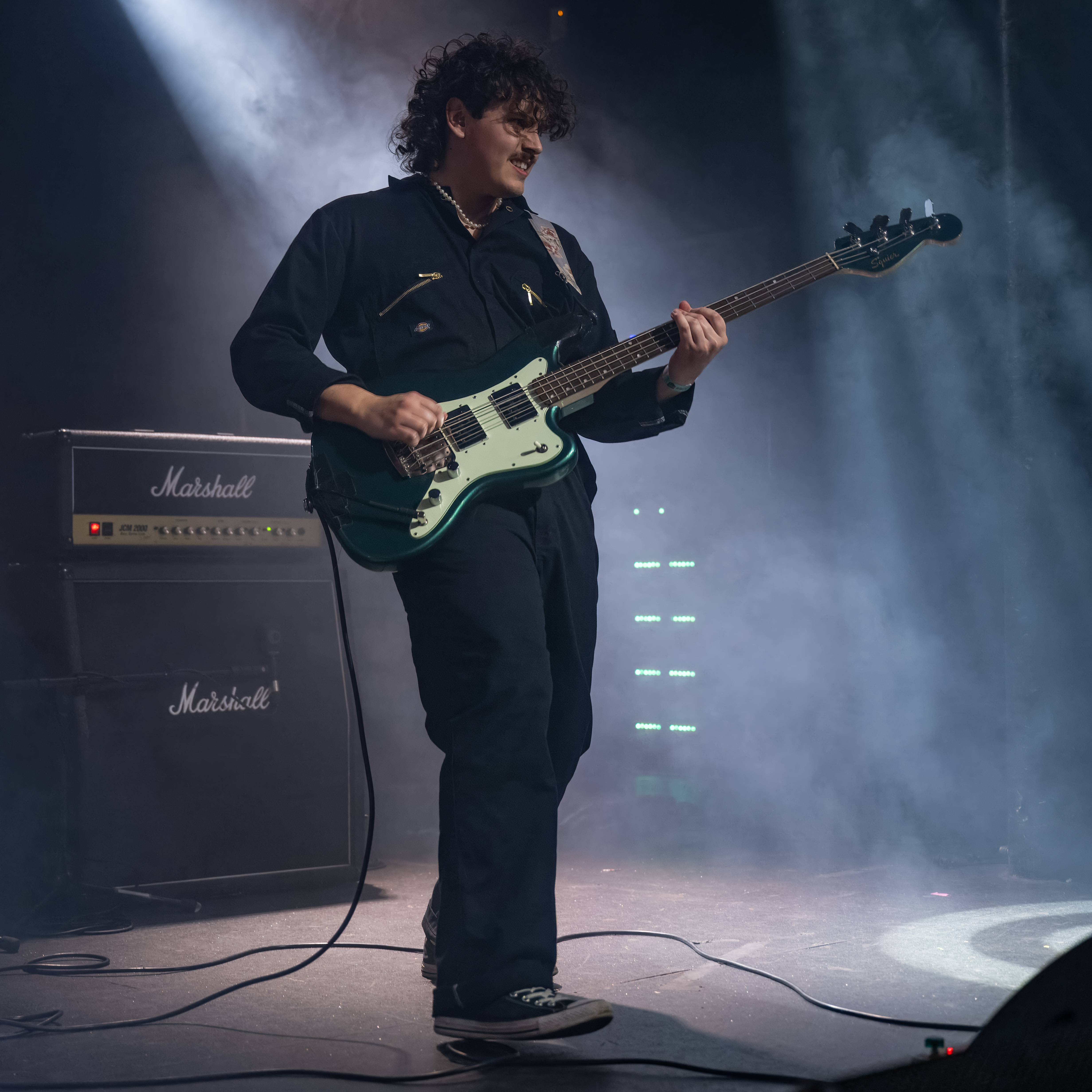 Martin’s Revenge's Offer of Love unleashed hell in Rock City. The alt-rock trio commanded the stage with such gnarly intensity, their grunge-infused energetic blend of bass reverb, gritty guitars and pounding drums felt reminiscent of Nirvana, IDLES and Pixies. Luke Eaton’s baritone deadpan vocals ascended and screamed, as he handled the slightly faulty microphone feedback with cautious vigour and grit. Harsh red strobe lights amplified the chaos and visceral ambience; matching Job Gregory’s thrashing drums as a wall-of-death mosh pit circulated, drawing a male-heavy crowd across generations towards the very centre. Catch the lads at The Bodega in April for another electrifying performance. KM-W