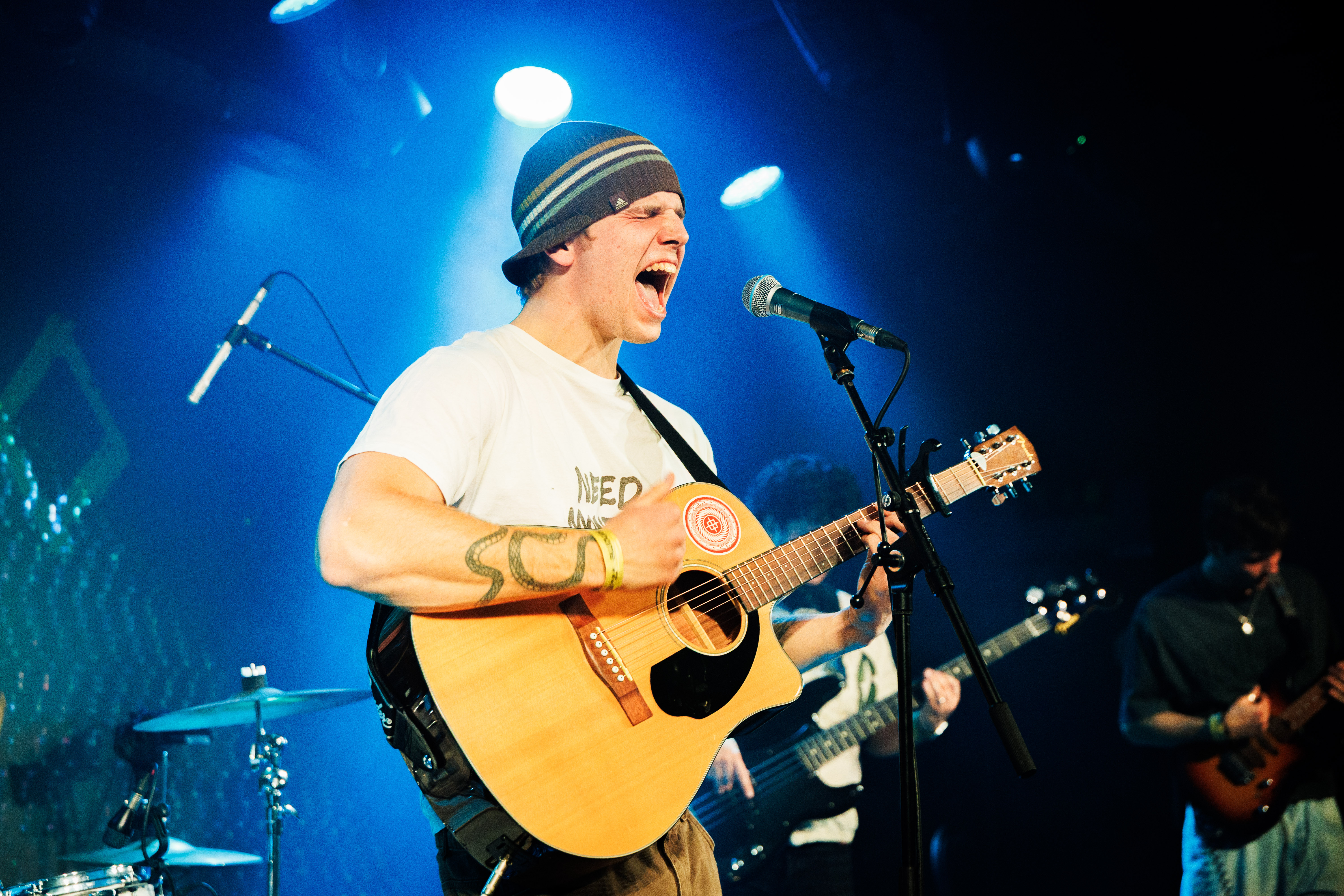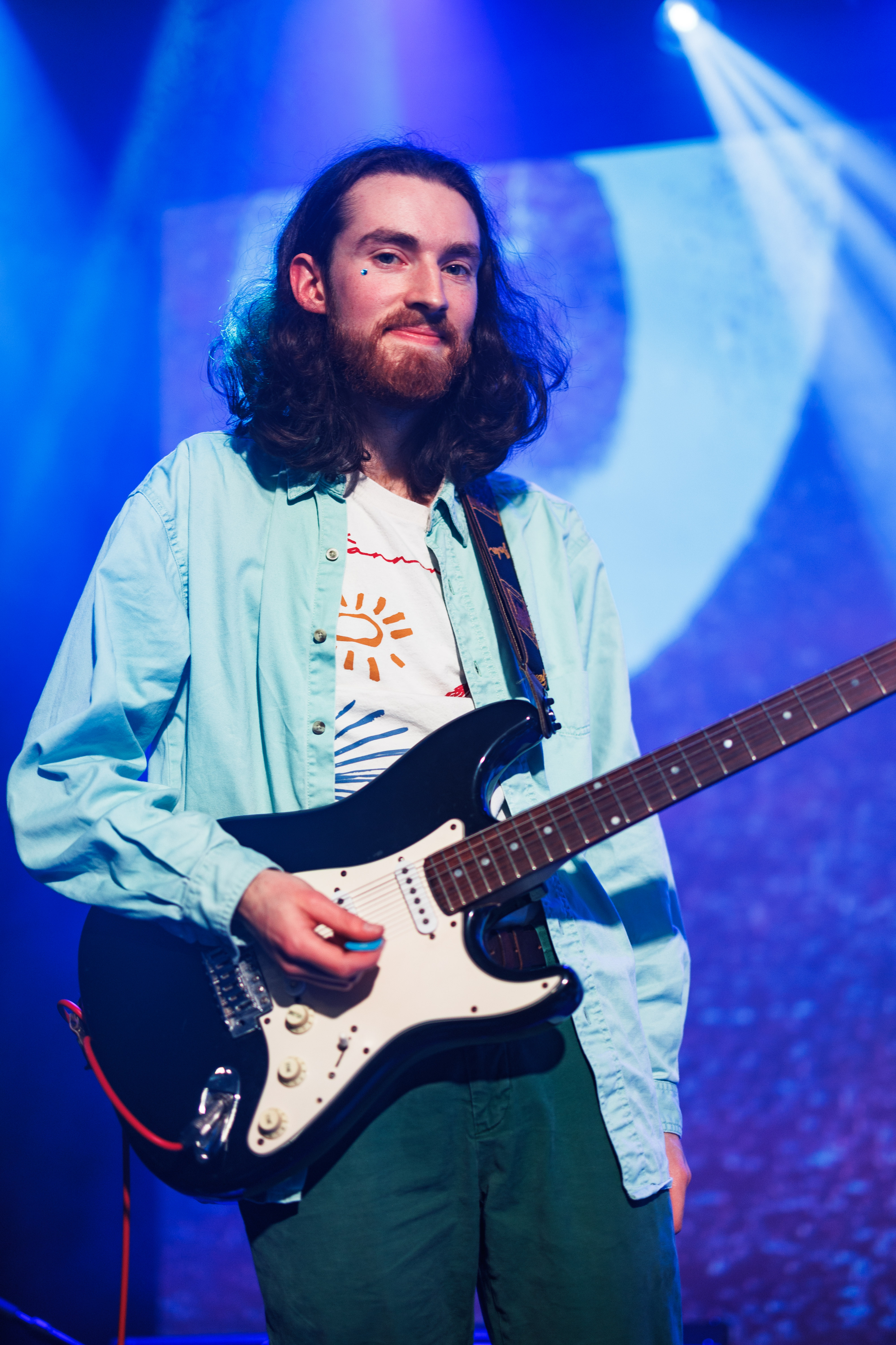 Onstage next is Bronco Lane, a mid-20s indie boy who declared that he hadn’t been on a skateboard for a week just in case he broke a bone and had to cancel the show. This commitment is visible throughout his gig. The energy through his songs misery likes company and advice is palpable. He kicks into each song with his band of mulleted mates with a “ready boys?”. Capo placed high up the neck of his guitar, his sad-boy soft rock takes on a rough-edged feel reminiscent of Nottingham legend Jake Bugg.