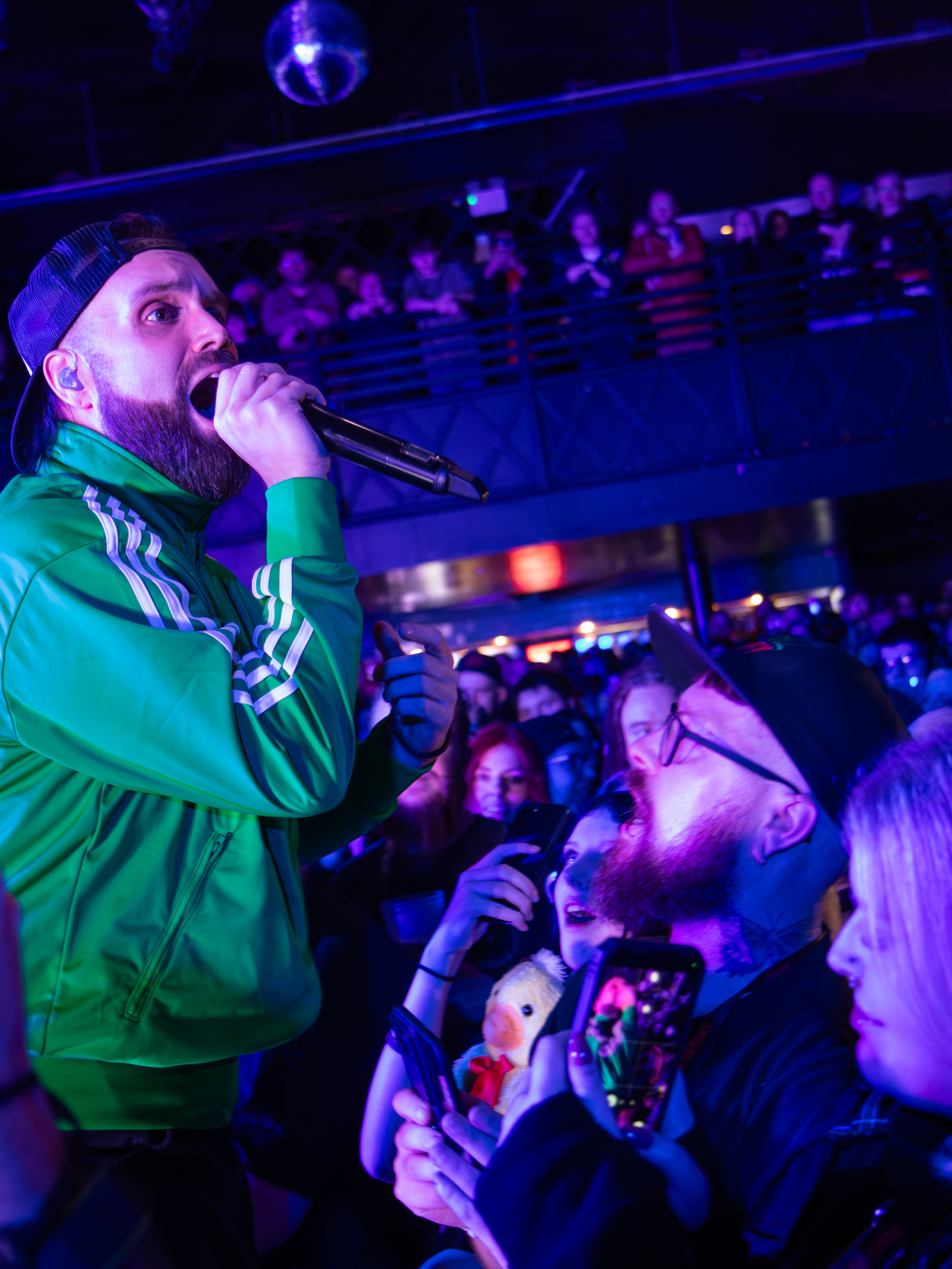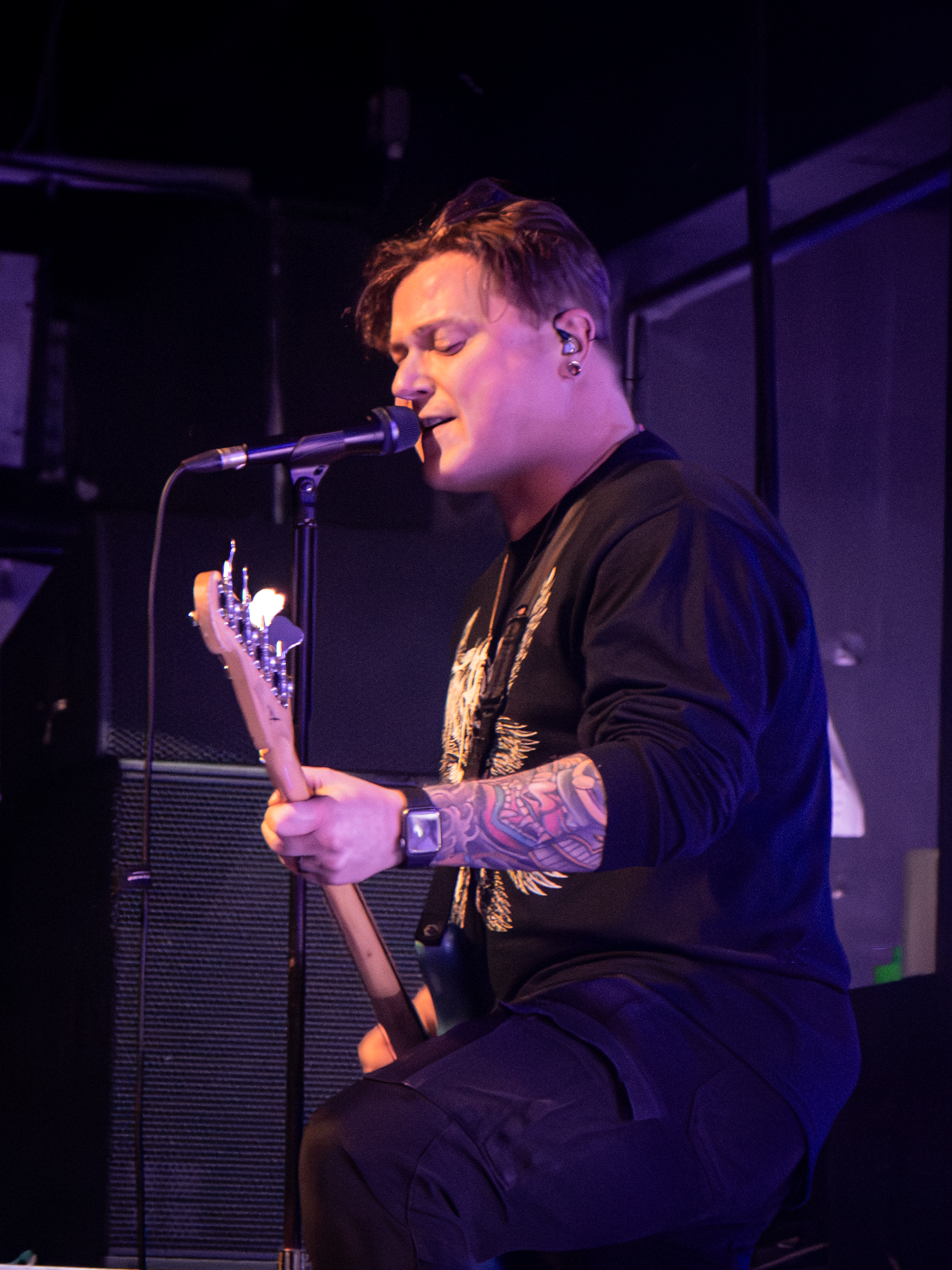 Warming up the crowd was Sean Smith of The Blackout and Sappenin' Podcast, delivering a short DJ set full of emo and pop punk bangers, getting the crowd excited for the night ahead. Though not usually one for being quiet, Sean let the music do the talking; full crowd singalongs, pints in hand, ensued and he beamed like a proud father.