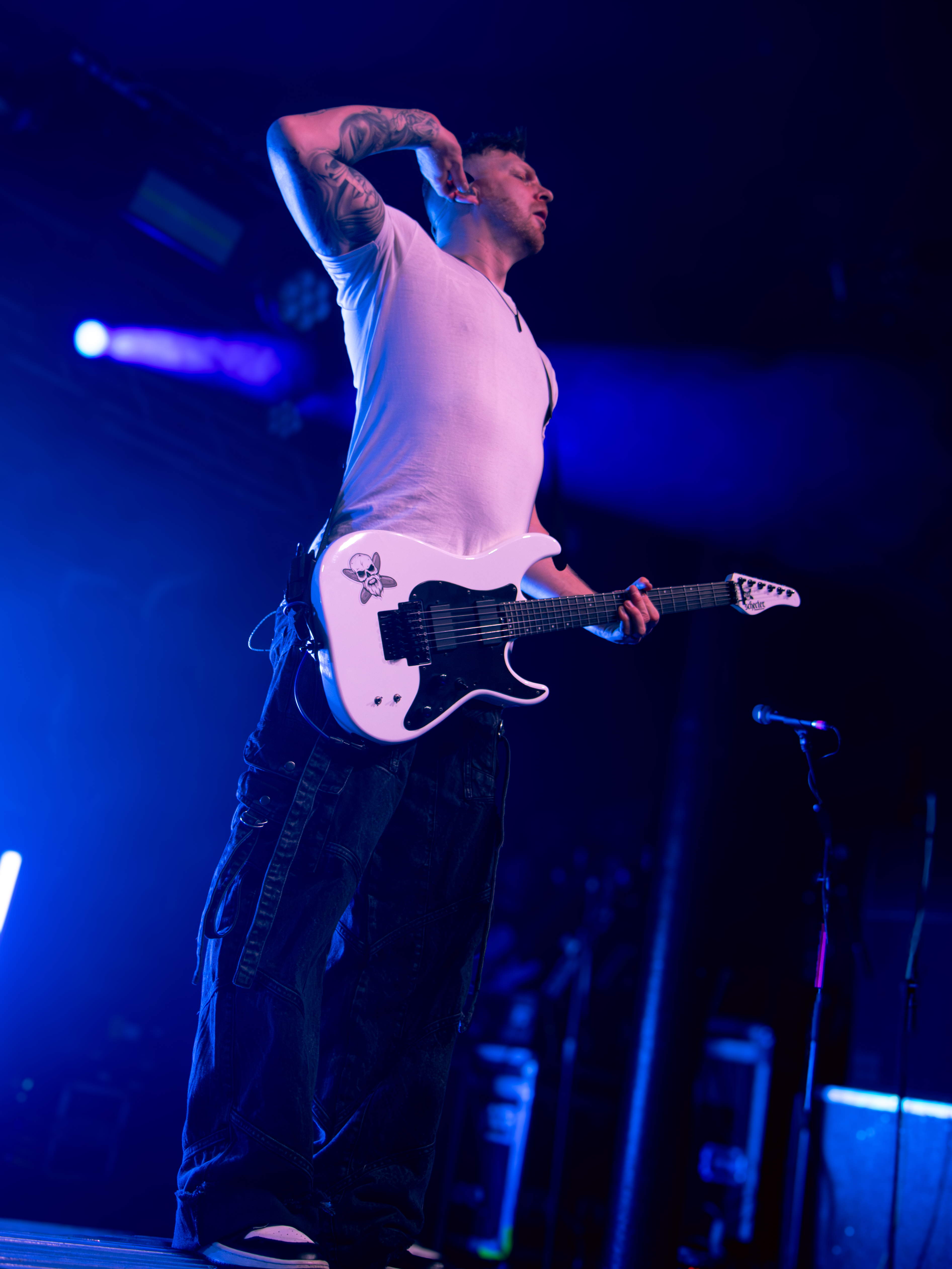 South Coast band The Bottom Line were up next, bringing a level of energy and crowd participation that’s usually only seen from headliners. What a band! Performing their first show since summer 2025, they christened themselves ‘Emo Rock Factory’ in homage to the headliner, and launched straight into their incredibly energetic set, with Best Days, Unpredictable and R.I.P from their 2025 release Life Lately making an early appearance. Each song they played seemed to get better than the last, with a pit opening up early on, where vocalist Callum Amies and guitarist Tom Newton joined the crowd, performing from the floor. As much as Amies was on stage, he was off it; whether that was standing on the barrier into the crowd, or crowd surfing across Rock City.