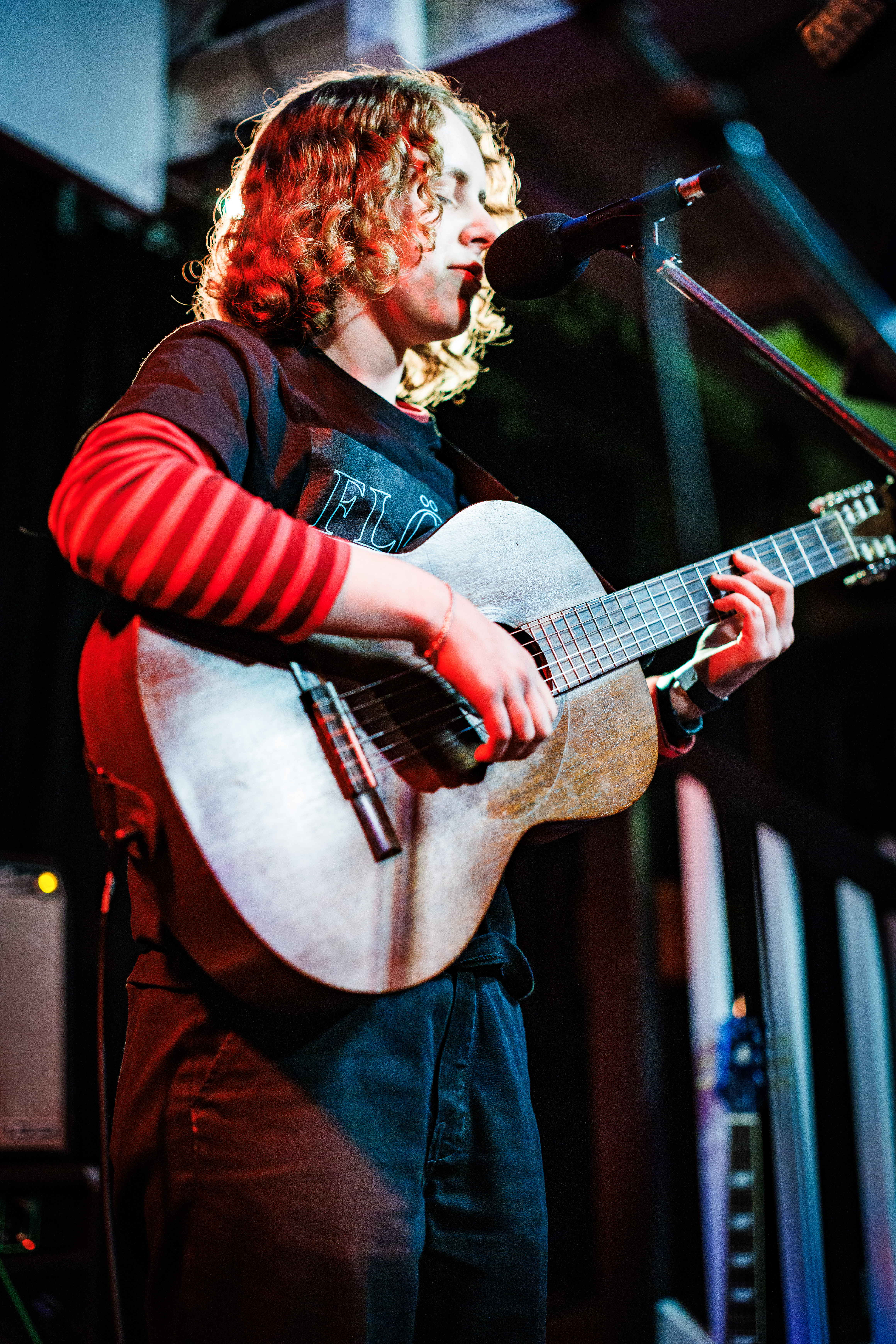 Another album track, Blueberries, earned a shout out to the opinionated Thompson Brothers greengrocers, where George works on Saturday mornings. “Blueberries are a bargain - get them for 83p,” he slips into sales mode, nodding to where the twins stand in the crowd below The Grove’s staircase.