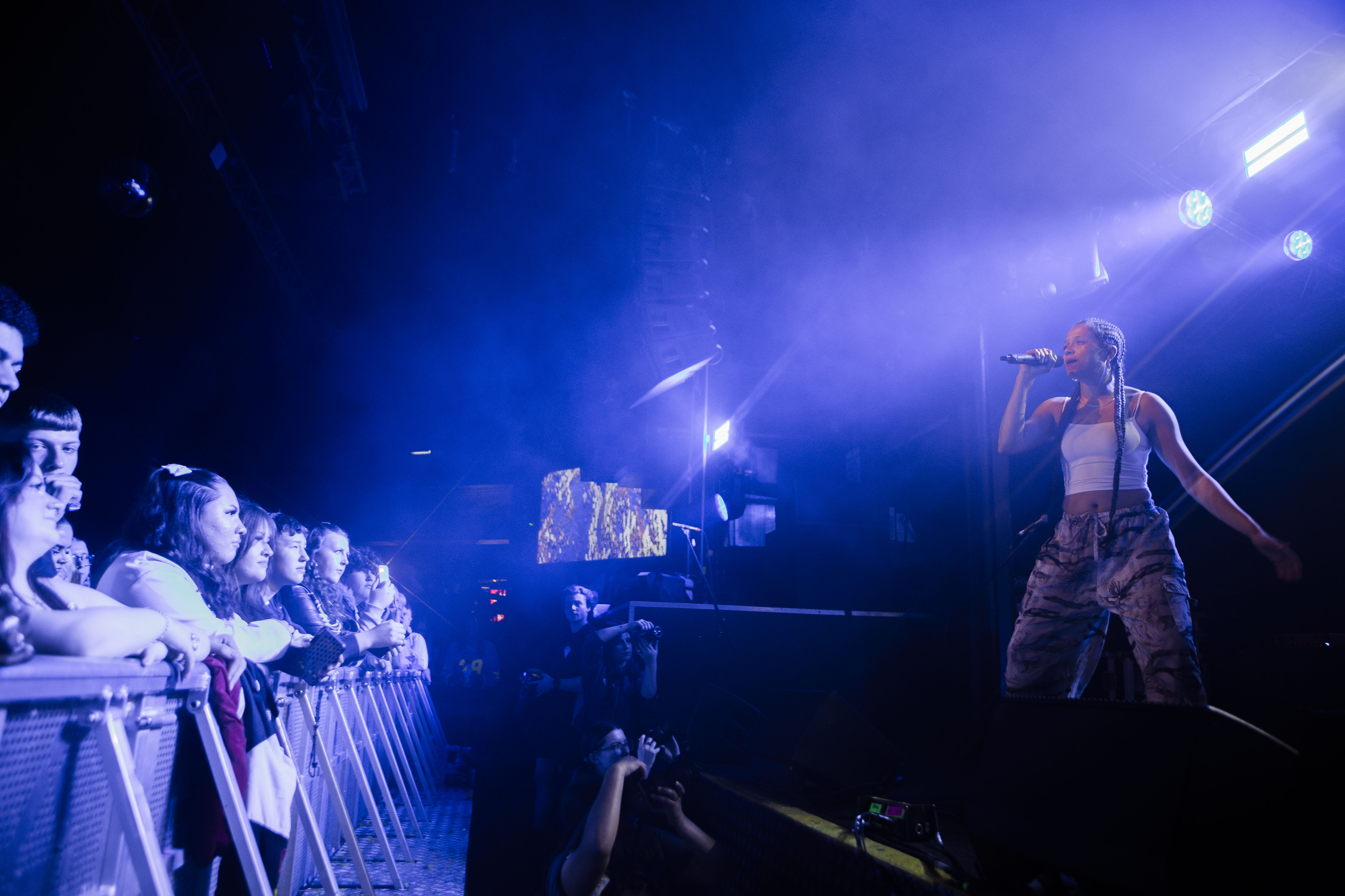 JayaHadADream was the first act out on stage. Her storytelling through her raps captivated the crowd, she has a hard hitting style which has hints of grime and hip hop. She owned the stage and made sure that everyone felt the message through the words she rapped. The perfect way to open the show. After her electric performance, she stayed on stage for an interview with the show’s host Kaylee Golding. She spoke about how she had helped out during the volunteering events and how hard all the young people worked.